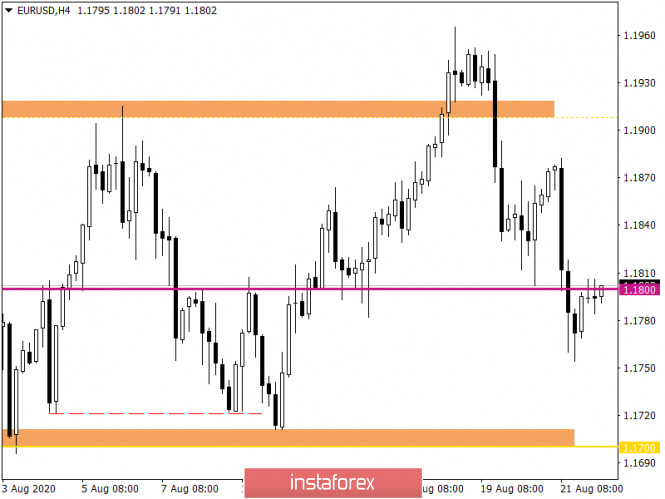 Горящий прогноз по EUR/USD на 24.08.2020 и торговая рекомендацияИнстаФорекс - Instaforex, 5 лет назад Нередко случается так, что макроэкономические данные выходят не совсем такими, как ожидается. И именно это произошло в пятницу. Точнее говоря, всю пятницу только так и было. При этом, словно по заказу, все это играло на пользу доллару, который практически весь день только тем и занимался, что укреплялся. Хотя напряжение на рынке продолжает сохраняться. Доллар по-прежнему серьезно перепродан. Началось все с предварительных данных по индексам деловой активности в зоне евро, которые должны были выйти несколько разнонаправленными. Но все оказалось намного интереснее. В частности, индекс деловой активности в производственном секторе, который должен был вырасти с 51,8 до 52,6, неожиданно снизился до 51,7. Но гораздо хуже дела обстоят с индексом деловой активности в сфере услуг, который, по прогнозам, должен был сократиться с 54,7 до 54,0. По факту же он буквально рухнул до 50,1, приблизившись к психологической отметке в 50,0. Которая отделяет стагнацию от роста. То есть, в сфере услуг зоны евро хоть и наблюдается рост, но крайне незначительный, и есть угроза нового спада. В результате всего этого составной индекс деловой активности снизился с 54,9 до 51,6 при прогнозе 54,3. Составной индекс деловой активности (Европа): В Соединенных же Штатах картина совершенно иная, так как данные вышли существенно лучше прогнозов. И это при том, что и так ждали роста индексов. Так, индекс деловой активности в производственном секторе, вместо того чтобы вырасти с 50,9 до 52,0, подрос до 53,6. Индекс деловой активности в сфере услуг, который должен был подрасти с 50,0 до 51,5, буквально взлетел до 54,8. Учитывая, что сфера услуг имеет гораздо больший вес, неудивительно, что составной индекс деловой активности стремительно вырос с 50,3 до 54,7. И это при том, что прогнозировался рост до 51,7. Но кроме этого, в Соединенных Штатах еще публиковались данные по продажам жилья на вторичном рынке, которые тоже превзошли все самые смелые ожидания. Ведь даже по самым оптимистичным прогнозам продажи должны были вырасти на 14,7%, и явно никто не ожидал их увеличения на 24,7%. В абсолютных числах продажи выросли с 4 700 тыс. до 5 860 тыс. Достигнув максимального за последние двенадцать месяцев значения. То есть, превзойдя даже те значения, которые были до начала пандемии коронавируса. Продажи жилья на вторичном рынке (Соединенные Штаты): Сегодня же никаких макроэкономических данных не публикуется, и по идее, учитывая сохраняющуюся перекупленность единой европейской валюты, мы должны стать свидетелями дальнейшего ее ослабления. Однако высока вероятность того, что даже если так и произойдет, то само снижение будет носить символический характер. Многие из тех причин, которые и привели к существенному ослаблению доллара, так никуда и не делись. Так что инвесторы не намерены рисковать без особых на то причин. Иными словами, пока не будет серьезных поводов для укрепления доллара в виде макроэкономической статистики или снижения политических рисков, во многом связанных с предстоящими президентскими выборами, ни о каком заметном укреплении доллара говорить не приходится. Валютная пара евро/доллар продолжает движение по траектории бокового канала 1,1700/1,1900, где в этот раз котировка удалось зафиксироваться ниже среднего уровня 1,1800. Уде