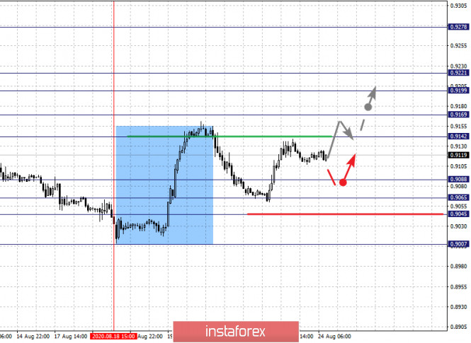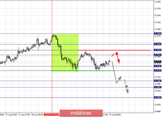 Фрактальный анализ по основным валютным парам на 24 августаИнстаФорекс - Instaforex, 5 лет назад Здравствуйте, уважаемые коллеги. По паре Евро/Доллар основного развития нисходящей тенденции от 18 августа ожидаем после прохода ценой шумового диапазона 1.1749 – 1.1729. По паре Фунт/Доллар следим за локальной нисходящей структурой от 21 августа, уровень 1.3182 ключевая поддержка. По паре Доллар/Франк основного развития восходящей тенденции от 18 августа ожидаем после пробоя 0.9170. По паре Доллар/Иена следим за восходящей структурой от 19 августа, уровень 105.39 ключевая поддержка. По паре Евро/Иена цена пока находится в области коррекции от нисходящей структуры, уровень 125.49 ключевая поддержка для низа. По паре Фунт/Иена следим за локальной нисходящей структурой от 21 августа, уровень 138.26 ключевое сопротивление, уровень 139.33 ключевая поддержка. Прогноз на 24 августа: Аналитический обзор валютных пар в масштабе Н1: По паре Евро/Доллар ключевыми уровнями в масштабе Н1 являются: 1.1884, 1.1846, 1.1824, 1.1775, 1.1749, 1.1729, 1.1695 и 1.1641. Здесь мы следим за развитием нисходящего цикла. От 18 августа. Краткосрочное нисходящее движение ожидаем в коридоре 1.1775 – 1.1749, проход ценой шумового диапазона 1.1749 – 1.1729 должен сопровождаться выраженным нисходящим движением к уровню 1.1695, возле которого возможна консолидация. Потенциальным значением для низа считаем уровень 1.1641, по достижении этого уровня ожидаем откат кверху. Краткосрочное восходящее движение возможно в коридоре 1.1824 – 1.1846, пробой последнего значения приведет к углубленной коррекции, здесь цель – 1.1884, этот уровень является ключевой поддержкой для нисходящей структуры от 18 августа. Основная тенденция – формирование нисходящей структуры от 18 августа Торговые рекомендации: Buy: 1.1824 Take profit: 1.1844 Buy: 1.1848 Take profit: 1.1884 Sell: 1.1775 Take profit: 1.1749 Sell: 1.1729 Take profit: 1.1695 По паре Фунт/Доллар ключевыми уровнями в масштабе Н1 являются: 1.3255, 1.3182, 1.3140, 1.3112, 1.3052, 1.2992, 1.2922 и 1.2873. Здесь мы следим за локальной нисходящей структурой от 21 августа. Продолжения движения книзу ожидаем после пробоя 1.3052, в данном случае цель – 1.2992, возле этого уровня консолидация. Пробой 1.2992 приведет к выраженному нисходящему движению, здесь цель – 1.2922. Потенциальным значением для низа считаем уровень 1.2873, по достижении которого ожидаем консолидацию, а также откат кверху. Краткосрочное восходящее движение возможно в диапазоне 1.3112 – 1.3140, пробой последнего значения приведет к углубленной коррекции, здесь цель – 1.3182, этот уровень является ключевой поддержкой для нисходящей структуры. Основная тенденция – локальная нисходящая структура от 21 августа Торговые рекомендации: Buy: 1.3112 Take profit: 1.3140 Buy: 1.3142 Take profit: 1.3180 Sell: 1.3052 Take profit: 1.2994 Sell: 1.2990 Take profit: 1.2924 По паре Доллар/Франк ключевыми уровнями в масштабе Н1 являются: 0.9278, 0.9221, 0.9199, 0.9169, 0.9142, 0.9088, 0.9065 и 0.9045. Здесь мы следим за формированием восходящей структуры от 18 августа. Краткосрочное восходящее движение ожидаем в коридоре 0.9142 – 0.9169, пробой последнего значения приведет к движению до уровня 0.9199, в коридоре 0.9199 – 0.9221 краткосрочное восходящее движение, а также консолидация. Потенциальным значением для верха считаем уровень 0.9278, по достижении этого уровня ожидаем откат книзу. Краткосрочное нисходящее движение возможно в коридоре 0.9088 – 0.9065, уровень 0.9045 является ключевой поддержкой для верха, его проход ценой будет располагать к развитию нисходящей тен