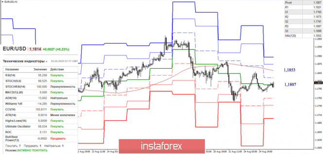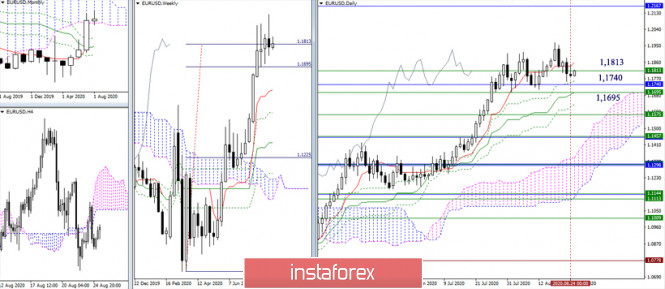 EUR/USD и GBP/USD 25 августа – рекомендации технического анализаИнстаФорекс - Instaforex, 5 лет назад EUR/USD и GBP/USD 25 августа – рекомендации технического анализа EUR/USD На прошлой неделе игроки на повышение предприняли попытку восстановления восходящего тренда, но соперник достаточно быстро вернул евро в зону прежней коррекции и сумел закрыть неделю с преобладанием своих настроений. В итоге пара вновь работает в зоне притяжения 1,1813 – 1,1740 – 1,1695 (отработанная недельная цель + месячный Сенкоу Спан А + уровни дневного креста). Уровни поддержки сейчас по-прежнему будут стараться удержать ситуацию от развития и углубления коррекции. Ранее им удалось это сделать на дневном таймфрейме. Несмотря на то, что дневной Чинкоу достиг зоны максимального вертикального удаления от графика цены и тогда были в наличии предпосылки для развития коррекции, игроки на понижение всё же ограничились поддержками 1,1813 – 1,1740 – 1,1695. В настоящий момент линия Чинкоу уже на недельном таймфрейме достигла зоны максимального вертикального удаления, одновременно с этим сохраняются предпосылки для развития нисходящей коррекции, первым ориентиром которой служит недельный краткосрочный тренд (1,1575). Весь вопрос сейчас в том, сумеют ли игроки на понижение добиться реализации глубокой недельной коррекции или же соперник в августе сможет удержаться в месячном облаке (1,1740), в которое он попал в июле, и будет настаивать на планах исполнения подъёма к верхней границе месячного облака (1,2167). На Н1 в настоящий момент идёт борьба за центральный Пивот-уровень (1,1807). Следующий ориентир при победе игроков на повышение – недельная долгосрочная тенденция (1,1853). Закрепление выше данных уровней позволит игрокам на повышение завладеть преимуществом на младших таймах. Далее основной задачей станет восстановление восходящего тренда, через преодоление максимального экстремума (1,1966). Поддержки классических Пивот-уровней сегодня расположены на 1,1765 – 1,1741 – 1,1699 и имеют усиление от уровней поддержки старших таймов, поэтому закрепление ниже может существенно помочь игрокам на понижение в дальнейшем. GBP/USD Рубеж 1,32 продолжает подтверждать свою историческую значимость. Игрокам на повышение, несмотря на потенциал июля, не удаётся реализовать пробой и продолжить подъём. В итоге пара вновь потеряла поддержку дневного краткосрочного тренда (1,3147) и находится в зоне нисходящей коррекции. Следующая задача игроков на понижение – ликвидация дневного золотого креста, уровни которого (1,3028 – 1,2954 – 1,2881) уже начали подготовку к данному процессу. Дневной крест Ишимоку в текущей ситуации имеет усиление от недельного облака (1,2874), поэтому ликвидация креста и возврат в недельное облако будут способствовать появлению новых понижательных перспектив и дальнейшему увеличению медвежьих настроений. На младших таймах фунт исполняет ретест пройденного несколько часов назад центрального Пивот-уровня (1,3088). Следующий ориентир недельная долгосрочная тенденция (1,3150). Закрепление выше изменит баланс сил на Н1 и позволит задуматься о восстановлении восходящего тренда (1,3266). Возврат медвежьих настроений и обновление вчерашнего минимума (1,3053) вернёт актуальность поддержкам, которые внутри дня расположены сегодня на 1,3027 (S1) – 1,2993 (S2) – 1,2932 (S3). Ichimoku Kinko Hyo (9.26.52), Pivot Points (классические), Moving Avarage (120) Материал предоставлен компани