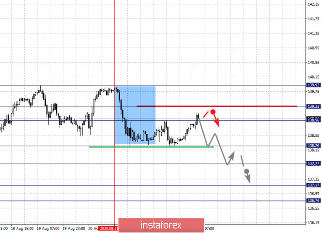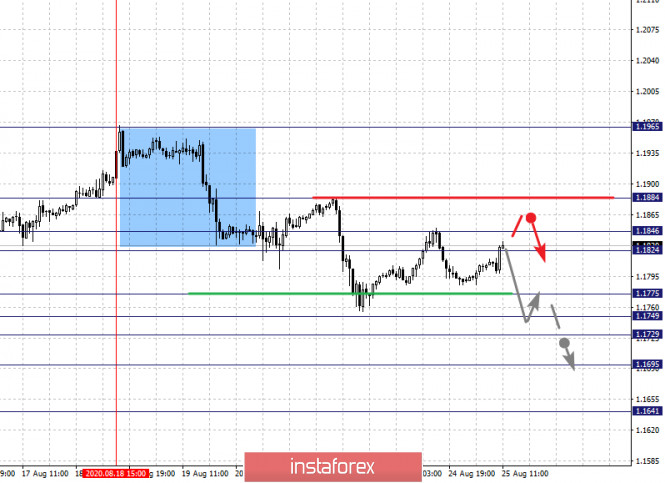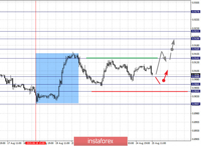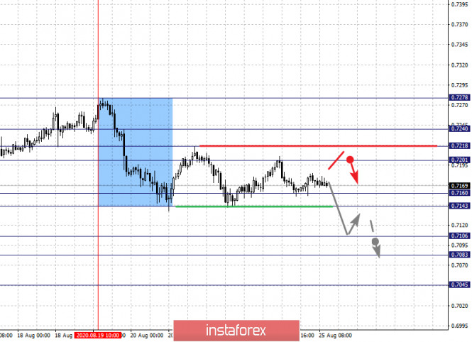 Фрактальный анализ по основным валютным парам на 25 августаИнстаФорекс - Instaforex, 5 лет назад Прогноз на 25 августа: Аналитический обзор валютных пар в масштабе Н1: По паре Евро/Доллар ключевыми уровнями в масштабе Н1 являются: 1.1884, 1.1846, 1.1824, 1.1775, 1.1749, 1.1729, 1.1695 и 1.1641. Здесь, мы следим за развитием нисходящего цикла. От 18 августа. Краткосрочное нисходящее движение, ожидаем в коридоре 1.1775 – 1.1749, проход ценой шумового диапазона 1.1749 – 1.1729 должен сопровождаться выраженным нисходящим движением к уровню 1.1695, возле которого, возможна консолидация. Потенциальным значением для низа, считаем уровень 1.1641, по достижении этого уровня ожидаем откат к верху. Краткосрочное восходящее движение, возможно в коридоре 1.1824 – 1.1846, пробой последнего значения приведет к углубленной коррекции, здесь цель – 1.1884, этот уровень является ключевой поддержкой для нисходящей структуры от 18 августа. Основная тенденция – формирование нисходящей структуры от 18 августа Торговые рекомендации: Buy: 1.1824 Take profit: 1.1844 Buy: 1.1848 Take profit: 1.1884 Sell: 1.1775 Take profit: 1.1749 Sell: 1.1729 Take profit: 1.1695 По паре Фунт/Доллар ключевыми уровнями в масштабе Н1 являются: 1.3255, 1.3182, 1.3140, 1.3112, 1.3052, 1.2992, 1.2922 и 1.2873. Здесь, мы следим за локальной нисходящей структурой от 21 августа. Продолжения движения к низу, ожидаем после пробоя 1.3052, в данном случае цель – 1.2992, возле этого уровня консолидация. Пробой 1.2992 приведет к выраженному нисходящему движению, здесь цель – 1.2922. Потенциальным значением для низа, считаем уровень 1.2873, по достижении которого, ожидаем консолидацию, а также откат к верху. Краткосрочное восходящее движение, возможно в диапазоне 1.3112 – 1.3140, пробой последнего значения приведет к углубленной коррекции, здесь цель – 1.3182, этот уровень является ключевой поддержкой для нисходящей структуры. Основная тенденция – локальная нисходящая структура от 21 августа Торговые рекомендации: Buy: 1.3112 Take profit: 1.3140 Buy: 1.3142 Take profit: 1.3180 Sell: 1.3052 Take profit: 1.2994 Sell: 1.2990 Take profit: 1.2924 По паре Доллар/Франк ключевыми уровня в масштабе Н1 являются: 0.9278, 0.9221, 0.9199, 0.9169, 0.9142, 0.9088, 0.9065 и 0.9045. Здесь, мы следим за формированием восходящей структуры от 18 августа. Краткосрочное восходящее движение, ожидаем в коридоре 0.9142 – 0.9169, пробой последнего значения приведет к движению до уровня 0.9199, в коридоре 0.9199 – 0.9221 краткосрочное восходящее движение, а также консолидация. Потенциальным значением для верха, считаем уровень 0.9278, по достижении этого уровня ожидаем откат к низу. Краткосрочное нисходящее движение, возможно в коридоре 0.9088 – 0.9065, уровень 0.9045 является ключевой поддержкой для верха, его проход ценой будет располагать к развитию нисходящей тенденции, в данном случае потенциальная цель – 0.9007. Основная тенденция – формирование восходящей структуры от 18 августа Торговые рекомендации: Buy: 0.9142 Take profit: 0.9169 Buy: 0.9171 Take profit: 0.9199 Sell: 0.9088 Take profit: 0.9065 Sell: 0.9064 Take profit: 0.9046 По паре Доллар/Иена ключевыми уровнями в масштабе являются: 107.25, 106.96, 106.57, 106.26, 105.92, 105.75, 105.47 и 105.12. Здесь, мы следим за развитием восходящей структуры от 19 августа. Краткосрочное восходящее движение, ожидаем в диапазоне 106.26 – 106.57. Проход ценой уровня 106.58 приведет к выраженному восходящему движению, здесь цель – 106.96. Потенциальным значением для верха, считаем уровень – 107.25, по достижении которого, ожидаем консолидацию, а также откат к низу. Краткосрочное нисходящее движение, возможно в коридоре 105.92 – 105.75, пробой пос