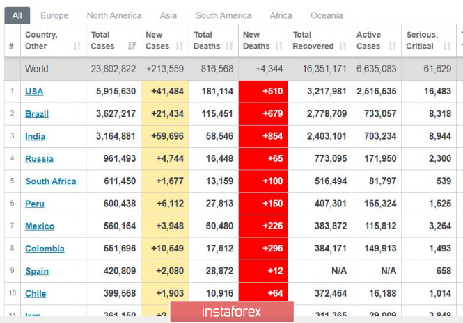 Торговый план 25.08.2020. EURUSD. Covid19 медленно отступает. Евро - ставки сделаныИнстаФорекс - Instaforex, 5 лет назад Covid19 в мире: Наконец хорошие новости. Спад в США - несколько дней ниже +45 К новых случаев в сутки; явный спад в Бразилии - в 3 раза ниже максимума роста в сутки; некоторый спад в Индии, хоть и небольшой. Вторая волна пандемии медленно, но снижается - в самых пострадавших странах, вероятно, уже достигнут минимально необходимый иммунитет - да и вакцины в разных странах всё ближе к применению - начато промышленное производство вакцин. В России ситуация стабильная - если верить официальным цифрам. Носите маски, господа и дамы! Число смертей заметно ниже +1000 в сутки в самых сложных странах. EURUSD: Евро сформировал два уровня. Покупаем от 1.1850. Продаем от 1.1750. Новости в четверг - занятость по США. Материал предоставлен компанией InstaForex - www.instaforex.com |