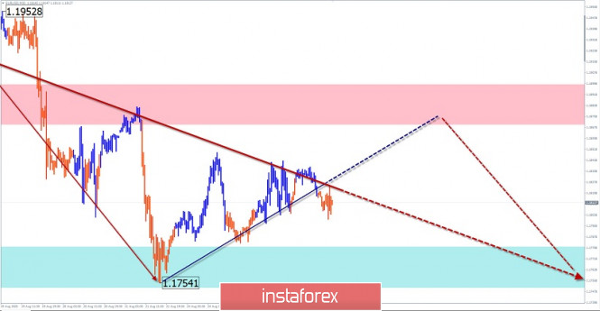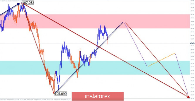 Упрощенный волновой анализ и прогноз EUR/USD, USD/JPY, GBP/JPY на 26 августаИнстаФорекс - Instaforex, 5 лет назад EUR/USD Анализ: В результате полугодового ценового подъема котировки европейской валюты достигли границ потенциально-разворотной зоны. Весь прошедший месяц цена формировала плоскую коррекцию, напоминающую сдвигающуюся плоскость. Структура этой волны близка к завершению. Прогноз: В ближайшие сутки ожидается преимущественно боковой вектор движения пары. На европейской сессии возможен вход цены вниз до расчетной поддержки. Во второй половине дня повышается вероятность разворота, с ростом цены до уровня сопротивления. Зоны потенциального разворота Сопротивление: - 1.1870/1.1900 Поддержка: - 1.1780/1.1750 Рекомендации: Торговля в коррекции довольно рискованна и может быть оправдана только при внутрисессионном стиле. Оптимально воздержаться от торговли до завершения коррекции и на ее конце искать сигналы покупки. USD/JPY Анализ: При определении краткосрочного тренда надо ориентироваться на алгоритм нисходящей волны от 5 июня. В ее структуре завершены первые 2 части (А-В). С 12 августа вниз формируется разворотная конструкция, после которой последует заключительное снижение (С). Прогноз: В ближайшие сутки ожидается завершение восходящего курса движения, формирование разворота и начало хода пары вниз. При смене курса не исключен кратковременный прокол верхней границы зоны сопротивления. Расчетная поддержка показывает нижнюю границу ожидаемого суточного хода. Зоны потенциального разворота Сопротивление: - 106.50/106.80 Поддержка: - 105.80/105.50 Рекомендации: Для покупок йены сегодня условий нет. В районе расчетного сопротивление рекомендуется отслеживать сигналы разворота для продажи инструмента. GBP/JPY Анализ: В результате развития восходящей волны от середины марта котировки кросса достигли широкой зоны сильного сопротивления. К настоящем времени цена достигла ее верхней границы. С конца июля на графике наблюдается «боковик». Экстремумы графика рисуют фигуру, напоминающую растянутую плоскость. Прогноз: Сегодня ожидается завершение ценового роста и начало встречного движения. Активная фаза снижения вероятна в конце дня либо завтра. Ближайшая поддержка может задержать цену в своих границах. Зоны потенциального разворота Сопротивление: - 139.80/140.10 Поддержка: - 139.20/138.90 - 138.30/138.00 Рекомендации: Покупки кросса сегодня могут быть очень рискованны и не рекомендуются. Основной акцент предлагается сделать на продажах инструмента. Пояснения: В упрощенном волновом анализе (УВА) волны состоят из 3 частей (А-В-С). Анализируется последняя незавершенная волна. Сплошным фоном стрелок показана сформированная структура, пунктирным - ожидаемые движения. Внимание: Волновой алгоритм не учитывает продолжительность движений инструмента по времени! Материал предоставлен компанией InstaForex - www.instaforex.com |