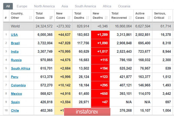 Торговый план 27.08.2020. EURUSD. Covid19 в мире. Отчет по занятости СШАИнстаФорекс - Instaforex, 5 лет назад Сovid19 в мире: В Индии всё довольно плохо, +75 К в сутки новых случаев; США и Бразилия стабилизируются на уровне примерно на 30% ниже максимальных значений; смертей в трёх самых плохих странах примерно +1000 в сутки. В России пока нет заметной второй волны - но есть риск второй волны в сентябре. В сентябре начнется пробная вакцинация в России - но на уровне "экспериментальной" - фактически это совмещение третьего этапа испытаний с первым этапом вакцинации. Запад критикует такой подход из-за опасности сильных побочных эффектов - но статистически это позитивно, способствует остановке пандемии. EURUSD: Сегодня важные новости - отчет по занятости в США за неделю - важна динамика длительной безработицы, подтвердится ли резкое замедление рынка труда. Евро сформировал узкий диапазон. Мы готовы купить от 1.1850-1.1855. Мы готовы продать от 1.1750. Материал предоставлен компанией InstaForex - www.instaforex.com |