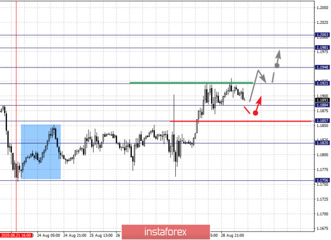 Фрактальный анализ по основным валютным парам на 31 августаИнстаФорекс - Instaforex, 5 лет назад Здравствуйте, уважаемые коллеги. По паре Евро/Доллар продолжения движения кверху ожидаем после пробоя 1.1921, уровень 1.1857 ключевая поддержка. По паре Фунт/Доллар продолжения движения кверху ожидаем после прохода шумового диапазона 1.3363 – 1.3387, уровень 1.3246 ключевая поддержка. По паре Доллар/Франк продолжения движения книзу ожидаем после пробоя 0.9020, уровень 0.9068 ключевая поддержка. По паре Доллар/Иена цена формирует потенциал для нисходящего движения от 28 августа, основного развития нисходящей тенденции ожидаем после пробоя 104.96. По паре Евро/Иена возобновления движения кверху ожидаем после пробоя 125.98, уровень 124.94 ключевая поддержка. По паре Фунт/Иена продолжения движения кверху ожидаем после пробоя 141.31, уровень 139.86 ключевая поддержка. Прогноз на 31 августа: Аналитический обзор валютных пар в масштабе Н1: По паре Евро/Доллар ключевыми уровнями в масштабе Н1 являются: 1.2003, 1.1981, 1.1948, 1.1921, 1.1884, 1.1857 и 1.1820. Здесь мы следим за развитием восходящего цикла от 21 августа. Краткосрочное движение кверху ожидаем в коридоре 1.1921 – 1.1948, пробой последнего значения приведет к движению до уровня 1.1981. Потенциальным значением для верха считаем уровень 1.2003, по достижении которого ожидаем консолидацию, а также откат книзу. Краткосрочное нисходящее движение возможно в коридоре 1.1884 – 1.1857, пробой последнего значения приведет к углубленной коррекции, здесь цель – 1.1820, этот уровень является ключевой поддержкой для восходящей структуры от 21 августа. Основная тенденция – восходящий цикл от 21 августа Торговые рекомендации: Buy: 1.1921 Take profit: 1.1946 Buy: 1.1950 Take profit: 1.1980 Sell: 1.1884 Take profit: 1.1858 Sell: 1.1855 Take profit: 1.1823 По паре Фунт/Доллар ключевыми уровнями в масштабе Н1 являются: 1.3463, 1.3424, 1.3387, 1.3363, 1.3276, 1.3246 и 1.3205. Здесь мы следим за развитием восходящего цикла от 24 августа. Краткосрочное восходящее движение ожидаем в коридоре 1.3363 – 1.3387, пробой последнего значения приведет к движению до уровня 1.3424, возле которого ожидаем консолидацию. Потенциальным значением для верха считаем уровень 1.3463, по достижении этого значения ожидаем откат книзу. Краткосрочное нисходящее движение возможно в коридоре 1.3276 – 1.3246, пробой последнего значения приведет к углубленной коррекции, здесь цель – 1.3205, этот уровень является ключевой поддержкой для верха. Основная тенденция – восходящий цикл от 24 августа Торговые рекомендации: Buy: 1.3363 Take profit: 1.3385 Buy: 1.3388 Take profit: 1.3424 Sell: 1.3276 Take profit: 1.3247 Sell: 1.3244 Take profit: 1.3207 По паре Доллар/Франк ключевыми уровнями в масштабе Н1 являются: 0.9099, 0.9085, 0.9068, 0.9055, 0.9020, 0.8982 и 0.8957. Здесь мы следим за развитием нисходящего цикла от 20 августа. Продолжения движения книзу ожидаем после пробоя 0.9020, в данном случае цель – 0.8982, возле этого уровня консолидация. Потенциальным значением для низа считаем уровень 0.8957, возле которого ожидаем консолидацию, а также откат кверху. Краткосрочное восходящее движение возможно в коридоре 0.9055 – 0.9068, пробой последнего значения приведет к углубленной коррекции, здесь потенциальная цель – 0.9085. Потенциальным значением для верха считаем уровень 0.9099, до которого ожидаем оформления начальных условий для восходящего цикла. Основная тенденция – нисходящий цикл от 20 августа. Торговые рекомендации: Buy: 0.9055 Take profit: 0.9066 Buy: 0.9070 Take profit: 0.9085 Sell: 0.9020 Take profit: 0.8985 Sell: 0.8980 Take profit: 0.8958 По паре Доллар/