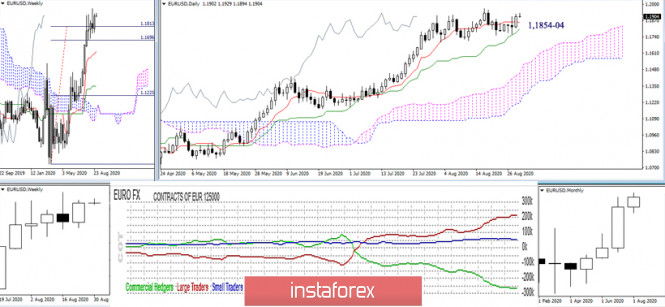 Последний отчет СОТ (Commitments of Traders). Недельные перспективы для EUR/USDИнстаФорекс - Instaforex, 5 лет назад Последний отчет СОТ (Commitments of Traders). Недельные перспективы для EUR/USD Открытый интерес к евро по данным последнего отчета СОТ (Commitments of Traders от 25.08.20.) остался примерно на прежнем уровне, показав лишь незначительный прирост (704077 против 704050). При этом чистые позиции основных участников рынка были увеличены. В группе Non-Commercial преобладание длинных позиций над короткими составило 5,2 раза, чистая позиция здесь ровна 211752 (+14809). Данный результат достигнут за счет активного сокращения коротких позиций (long +2817 – short -11992). В группе Commercial лидерство сохраняют короткие позиции, имея перевес в 1,8 раза. Чистая позиция также показала общий рост (+8618), она ровна 267982. Так как существует определённый паритет между группами крупных игроков, то в TOTAL позиции сейчас сохраняется незначительный перевес (всего 8%) коротких позиций (ч.п. 56230; -6191). Основной вывод Тенденция сохраняется. Прошлые выводы по-прежнему актуальны. Лидерство длинных позиций у группы, отвечающей за текущий тренд (Non-Commercial), в основном достигается за счет сокращения позиций соперника, поэтому явного бычьего импульса паре достичь пока не удаётся. Техническая картина В техническом плане наблюдается работа в зоне коррекции. Сила и влияние поддержек (1,1813 – 1,1740 – 1,1695) продолжают ограничивать развитие нисходящей коррекции. Линии дневного креста сокращают разрыв, что в ближайшее время может спровоцировать смену направления креста, а значит и общих дневных приоритетов. Поддержки дневного креста Ишимоку расположены сегодня на 1,1854-04. Пока евро находится выше креста перевес сил на стороне игроков на повышение, ослабляющим фактором при этом является нахождение пары в зоне нисходящей коррекции. Ближайшим повышательным ориентиром сейчас служит максимальный экстремум (1,1966), далее интересы быков будут направлены на подъём к верхней границе месячного облака (1,2167). На младших таймах перевес сил принадлежит игрокам на повышение. Ориентирами внутри дня выступают классические Пивот-уровни 1,1945 – 1,1987 – 1,2054. Ключевые поддержки находятся на 1,1878 (центральный Пивот-уровень) и 1,1838 (недельная долгосрочная тенденция). Закрепление ниже изменит баланс сил на Н1 и приведёт пару в зону поддержек дневного креста (1,1854-04). Преодоление дневных поддержек и надёжное закрепление ниже изменит баланс сил уже на дневном таймфрейме, а далее, после прохождения ключевых поддержек данного участка (1,1813 – 1,1740 – 1,1695) можно будет ожидать развитие недельной нисходящей коррекции. Ichimoku Kinko Hyo (9.26.52), Pivot Points (классические), Moving Avarage (120) Материал предоставлен компанией InstaForex - www.instaforex.com |