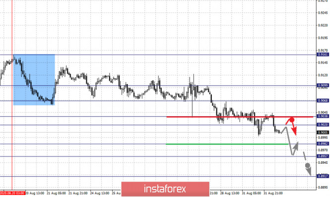 Фрактальный анализ по основным валютным парам на 1 сентябряИнстаФорекс - Instaforex, 5 лет назад Здравствуйте, уважаемые коллеги. По паре Евро/Доллар продолжения движения кверху ожидаем после пробоя 1.2003, уровень 1.1921 ключевая поддержка. По паре Фунт/Доллар из диапазона 1.3424 – 1.3455 возможен ключевой разворот книзу, уровень 1.3356 ключевая поддержка для верха. По паре Доллар/Франк ожидаем движение к уровню 0.8982, уровень 0.9038 ключевая поддержка. По паре Доллар/Иена возобновления движения книзу ожидаем после пробоя 105.52, уровень 106.08 ключевая поддержка. По паре Евро/Иена возобновления движения кверху ожидаем после пробоя 127.20, уровень 126.07 ключевая поддержка. По паре Фунт/Иена продолжения движения кверху ожидаем после пробоя 141.86, уровень 141.04 ключевая поддержка. Прогноз на 1 сентября: Аналитический обзор валютных пар в масштабе Н1: По паре Евро/Доллар ключевыми уровнями в масштабе Н1 являются: 1.2080, 1.2045, 1.2003, 1.1948, 1.1921 и 1.1884. Здесь мы следим за развитием восходящего цикла от 21 августа. Продолжения движения кверху ожидаем после пробоя 1.2003, в данном случае цель – 1.2045. Потенциальным значением для верха считаем уровень 1.2080, по достижении которого ожидаем консолидацию, а также откат книзу. Краткосрочное нисходящее движение возможно в коридоре 1.1948 – 1.1921, пробой последнего значения приведет к углубленной коррекции, здесь цель – 1.1884, этот уровень является ключевой поддержкой для восходящей структуры от 21 августа. Основная тенденция – восходящий цикл от 21 августа Торговые рекомендации: Buy: 1.2003 Take profit: 1.2045 Buy: 1.2047 Take profit: 1.2078 Sell: 1.1948 Take profit: 1.1924 Sell: 1.1918 Take profit: 1.1886 По паре Фунт/Доллар ключевыми уровнями в масштабе Н1 являются: 1.3496, 1.3455, 1.3424, 1.3387, 1.3356 и 1.3292. Здесь мы следим за развитием восходящего цикла от 24 августа. Краткосрочное восходящее движение ожидаем в коридоре 1.3424 – 1.3455, пробой последнего значения приведет к движению до потенциальной цели – 1.3496, по достижении этого уровня ожидаем консолидацию, а также откат книзу. Краткосрочное нисходящее движение возможно в коридоре 1.3387 – 1.3356, пробой последнего значения приведет к углубленной коррекции, здесь цель – 1.3292, этот уровень является ключевой поддержкой для верха. Основная тенденция – восходящий цикл от 24 августа Торговые рекомендации: Buy: 1.3424 Take profit: 1.3455 Buy: 1.3457 Take profit: 1.3496 Sell: 1.3385 Take profit: 1.3356 Sell: 1.3354 Take profit: 1.3294 По паре Доллар/Франк ключевыми уровнями в масштабе Н1 являются: 0.9099, 0.9068, 0.9038, 0.9020, 0.8982, 0.8957 и 0.8917. Здесь мы следим за развитием нисходящего цикла от 20 августа. Краткосрочное нисходящее движение ожидаем в коридоре 0.8982 – 0.8957, пробой последнего значения должен сопровождаться выраженным движением к потенциальной цели – 0.8917, по достижении этого уровня ожидаем откат кверху. Краткосрочное восходящее движение возможно в коридоре 0.9020 – 0.9038, пробой последнего значения приведет к углубленной коррекции, здесь потенциальная цель – 0.9068. Потенциальным значением для верха считаем уровень 0.9099, до которого ожидаем оформления начальных условий для восходящего цикла. Основная тенденция – нисходящий цикл от 20 августа. Торговые рекомендации: Buy: 0.9020 Take profit: 0.9037 Buy: 0.9040 Take profit: 0.9068 Sell: 0.8980 Take profit: 0.8958 Sell: 0.8955 Take profit: 0.8920 По паре Доллар/Иена ключевыми уровнями в масштабе являются: 106.42, 106.08, 105.87, 105.52, 105.20, 104.96 и 104.39. Здесь мы следим за формированием нисходящего потенциала от 28 августа. Продолжения движения книзу ожидаем после пробоя 105.52, в