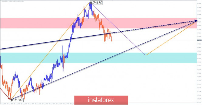 Упрощенный волновой анализ и прогноз GBP/USD, AUD/USD, USD/CHF на 3 сентябряИнстаФорекс - Instaforex, 5 лет назад GBP/USD Анализ: На графике британского фунта последние полгода доминирует восходящий тренд. Незавершенный участок тренда берет начало 30 июня. Котировки длительное время двигались вдоль верхней рубежа зоны сопротивления крупного ТФ, которую продавили в конце августа. Теперь верхняя граница пройденной зоны стала сильной поддержкой. Прогноз: Сегодня ожидается завершение нисходящего настроить движение, формирование разворота и возврат к восходящему курсу. Диапазон колебаний будет ограничен встречными зонами. При смене курса не исключен кратковременный прокол нижней границе поддержки. Зоны потенциального разворота Сопротивление: - 1.3370/1.3400 Поддержка: - 1.3260/1.3230 Рекомендации: Сегодня торговля на рынке фунта довольно рискованна и может использоваться только в рамках внутрисессионного стиля. После появления сигналов разворота рекомендуются покупки инструмента. AUD/USD Анализ: Начавшийся в марте тренд австралийского доллара уверенно двигает котировки пары на север ценового графика. Встречные уровни лишь провоцируют промежуточные коррекции. Очередной такой уровень был продавлен 28 августа. После прорыва цена корректируется, чтобы продолжить потом свой подъем. Прогноз: В ближайшие сутки цену пары ожидают движение в боковом коридоре между встречными зонами, с нисходящим вектором. Завершения хода вниз вероятнее всего в районе расчетной поддержки. Смена курса вероятна в конце суток либо завтра. Зоны потенциального разворота Сопротивление: - 0.7340/0.7370 Поддержка: - 0.7270/0.7240 Рекомендации: Для продаж на рынке австралийского доллара условий нет. В районе расчетной поддержки рекомендуется отслеживать сигналы для покупки инструмента. USD/CHF Анализ: На рынке швейцарского франка продолжается начавшийся еще в прошлом году нисходящий тренд. Последний участок стартовал 20 марта. Весь прошедший месяц котировки двигались вдоль сильной поддержке крупного масштаба. Структура промежуточной коррекции близится к завершению. Прогноз: Сегодня высока вероятность окончания текущего последние дни восходящего настроя. Далее цену ждет разворота и начало движения по основному тренду. Смену курса можно ждать в конце суток. При прорыве ближайшей поддержки снижение продолжится до следующей зоны. Зоны потенциального разворота Сопротивление: - 0.9160/0.9190 Поддержка: - 0.9100/0.9070 - 0.9020/0.8990 Рекомендации: Покупки на рынке пары довольно рискованны и могут использоваться только в рамках сессий. В зоне сопротивления рекомендуется отслеживать сигналы разворота для продажи инструмента. Пояснения: В упрощенном волновом анализе (УВА) волны состоят из 3 частей (А-В-С). Анализируется последняя незавершенная волна. Сплошным фоном стрелок показана сформированная структура, пунктирным - ожидаемые движения. Внимание: Волновой алгоритм не учитывает продолжительность движений инструмента по времени! Материал предоставлен компанией InstaForex - www.instaforex.com |