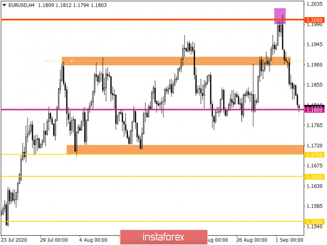 Горящий прогноз по EUR/USD на 03.09.2020 и торговая рекомендацияИнстаФорекс - Instaforex, 5 лет назад Даже факт того, что в Европе данные вышли лучше прогнозов, а в Соединенных Штатах хуже, никак не смог помешать дальнейшему ослаблению единой европейской валюты. А все дело в том, что вчерашние макроэкономические данные глобально ничего не меняют. Например, темпы спада цен производителей в Европе, которые должны были замедлиться с -3,7% до -3,5%, снизились до -3,3%. Но ведь от этого ничего не меняется. Это никак не отменяет факта начала дефляции в зоне евро. Также замедление темпов спада цен производителей еще не гарантирует того, что в следующем месяце потребительские цены будут расти. Это лишь повышает вероятность подобного развития событий. Но не более того. Хотя справедливости ради стоит отметить, что публикация этих данных хотя бы на некоторое время приостановила процесс ослабления единой европейской валюты. Цены производителей (Европа): Рост доллара же возобновился сразу после публикации данных ADP по занятости, которые оказались хуже прогнозов. Дело в том, что, по прогнозам, занятость должна была вырасти на 1 000 тыс. По факту же она выросла лишь на 428 тыс. Однако это все равно рост занятости. Причем внушительный. Это один из лучших показателей роста занятости в истории. И гораздо важнее то, что занятость выросла намного больше, нежели в предыдущем месяце. Иными словами, после замедления темпов восстановления рынка труда они вновь ускорились. Пусть и не так сильно, как ожидалось. Таким образом, содержание публикуемого в пятницу доклада Министерства труда в любом случае отразит заметное улучшение ситуации на этом самом рынке труда. Изменение занятости от ADP (Соединенные Штаты): Учитывая, что Доклад министерства труда публикуется уже завтра, то сегодня в центре внимания будут находиться заявки на пособия по безработице в Соединенных Штатах. Тем более что они тоже должны подтвердить факт дальнейшего восстановления рынка труда. Так, число первичных заявок вновь должно снизиться ниже отметки 1 000 тыс. С 1 006 тыс. до 995 тыс. Число же повторных заявок может уменьшиться с 14 535 тыс. до 14 150 тыс. Так что занятость постепенно восстанавливается, хотя уровень безработицы все еще очень и очень высок. Но тут важно само движение в правильном направлении. Число первичных заявок на пособия по безработице (Соединенные Штаты): Валютная пара евро/доллар имеет интенсивный ход цены от психологического уровня 1,2000, где котировке удалось пройти более чем 200 пунктов, не снижай при этом нисходящий интерес. Заданный настрой указывает на возможность более глубокого снижения, что будет оправдано в плане высокой степени перекупленности европейской валюты за последние несколько месяцев. Если исходить из текущего расположения котировки, то можно увидеть, что участники рынка уже штурмуют уровень 1,1800, а если падет и он, то не исключается движение к локальному минимуму начала августа район 1,1700/1,1710. Относительно рыночной динамики фиксируется высокий показатель волатильности, что подтверждается спекулятивным интересом на рынке. Рассматривая торговый график в общем плане (дневной период), можно увидеть, что котировка уже вернулась в границы прежнего бокового канала. Можно предположить, что на уровне 1,1800 может возникнуть локальный застой, но в случае удержания нисходящего интереса и ф