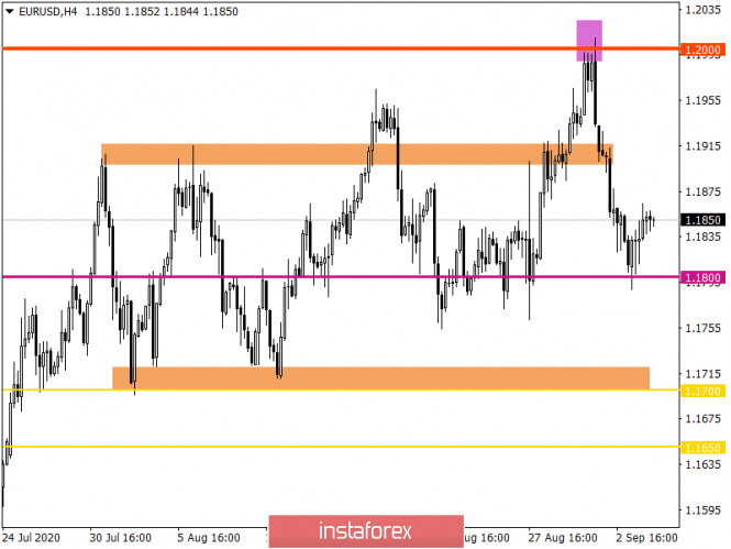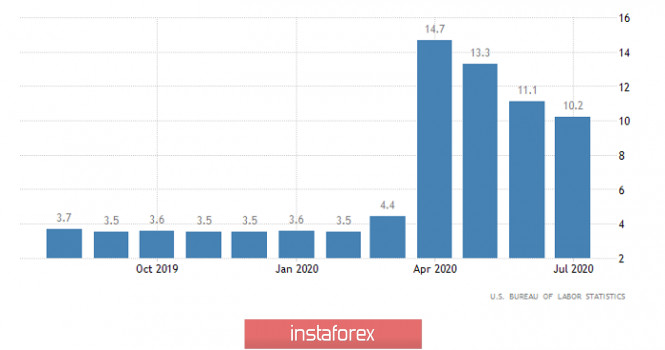 Горящий прогноз по EUR/USD на 04.09.2020 и торговая рекомендацияИнстаФорекс - Instaforex, 5 лет назад Конечно, какое-то время доллар довольно активно рос, но по итогам вчерашнего дня он все равно остался на тех же самых позициях, с которых этот день и начинал. И откровенно говоря, это выглядит безумно, так как все указывало на то, что доллар должен был уверенно расти. Что в Европе, что в Соединенных Штатах макроэкономическая статистика благоволила именно росту доллара. Но, судя по всему, в какой-то момент инвесторы просто вспомнили о том, что сегодня публикуется доклад Министерства труда Соединенных Штатов, и решили не рисковать раньше времени. При этом европейская статистика и вовсе ввергла участников рынка в шок. Ведь ожидалось, что темпы роста розничных продаж ускорятся с 1,3% до 3,7%, что будет компенсировать спад потребительских цен. Да не просто компенсировать, а с лихвой перекрывать. Однако темпы роста вдруг замедлились до 0,4%. Получается, что в Европе не только дефляция началась, но еще и потребительская активность уверенно идет вниз. В общем, картина ужасающая. И именно с этого момента рынок буквально замер на месте, словно загипнотизированный. Ведь рассчитывали на совершенно иной результат, и после столь неожиданных данных никто просто не понимал, что делать дальше. Розничные продажи (Европа): Но самым интересным оказалась реакция рынка на данные по заявкам на пособия по безработице в Соединенных Штатах. Дело в том, что данные вышли значительно лучше прогнозов. В частности, число первичных заявок на пособия по безработице сократилось с 1 011 тыс. до 881 тыс. Что является самым низким значением с момента начала пандемии коронавируса, и того экономического ущерба, который она нанесла. Число же повторных заявок на пособия по безработице уменьшилось с 14 492 тыс. до 13 254 тыс. Что тоже является лучшим с начала кризиса результатом. Но реакции не последовало. Как уже говорилось ранее, инвесторы решили не рисковать в преддверии сегодняшней публикации доклада Министерства труда Соединенных Штатов. Число первичных заявок на пособия по безработице (Соединенные Штаты): Итак, ожидания по содержанию доклада Министерства труда Соединенных Штатов довольно оптимистичные. Самое главное, что уровень безработицы должен снизиться с 10,2% до 9,9%. При этом динамика заявок на пособия по безработице внушает веру в то, что безработица снизится немного сильнее. Кроме этого, ожидается, что вне сельского хозяйства было создано 1 490 тыс. новых рабочих мест. Что является очень и очень хорошим результатом. И инвесторы будут смотреть именно на эти показатели. А такие вещи, как, например, динамика средней почасовой заработной платы, темпы роста которой должны замедлиться с 4,8% до 4,6%, сейчас мало кого волнует. Сначала надо решить вопрос с безработицей, а с зарплатами разбираться будут позже. Уровень безработицы (Соединенные Штаты): Валютная пара евро/доллар, двигаясь по нисходящей траектории от уровня сопротивления 1,2000, сумела найти точку опоры в виде среднего рыночного уровня 1,1800, где замедлила движение и сформировала отскок в направлении 1,1865. Если исходить из текущего расположения котировки, то можно увидеть очередное замедление в рамках 1,1840/1,1865, что указывает на предстоящее ускорение на рынке. Относительно рыночной динамики фиксируется незначительный спад волатильности, что т