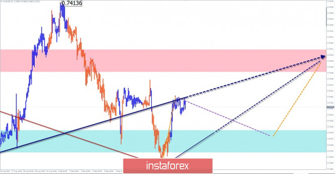 Упрощенный волновой анализ и прогноз EUR/USD, AUD/USD, GBP/JPY на 10 сентябряИнстаФорекс - Instaforex, 5 лет назад EUR/USD Анализ: Котировки европейской валюты продолжают двигаться согласно описанному в прошлых обзорах алгоритму. Незавершенная на сегодня волна от 31 июля в более крупной конструкции стала коррекцией. Экстремумы образуют растянутую плоскость. В структуре этой волны близок к завершению откат в последнем отрезке (С). Прогноз: Сегодня ожидается движение в ценовом коридоре между ближайшими встречными зонами. На ближайшей сессии можно ждать давление на зону сопротивления. После этого будет разворот и ход цены вниз. Расчетная поддержка находится на верхней границе широкой потенциальной разворотной зоны. Зоны потенциального разворота Сопротивление: - 1.1810/1.1840 Поддержка: - 1.1730/1.1700 Рекомендации: Для покупок на рынке евро условий пока не создано. Рекомендуется отслеживать сигналы продажи инструмента. При расчете торгового лота стоит учитывать ограниченность потенциала снижения пары. AUD/USD Анализ: На графике мажора австралийского доллара с 20 стартовала новая краткосрочная волна по основному направлению тренда. В последнюю декаду цена двигалась вниз, образуя коррекцию (В). Вчерашний подъем обладает высоким разворотным потенциалом и имеет все шансы дать начало бычьему участку (С). Прогноз: Сегодня, на европейской сессии дня возможно снижение в район расчетной поддержки. К концу дня можно ждать активизацию и повторную попытку подъема. Рост курса выше расчетного сопротивления в рамках суток маловероятен. Зоны потенциального разворота Сопротивление: - 0.7320/0.7350 Поддержка: - 0.7240/0.7210 Рекомендации: Для продаж на рынке «аусси» условий нет. В районе расчетной поддержки рекомендуется отслеживать сигналы покупки инструмента. GBP/JPY Анализ: Направление движения кросса с середины марта задает восходящая волна дневного масштаба. Вчера завершилась коррекционная волна от 30 июня. На графике она выглядела как «расширяющийся» треугольник, или по Эллиотту - растянутая плоскость. Вчерашний подъем обладает разворотным потенциалом и может стать началом нового участка основного тренда. Прогноз: В ближайшие сутки можно ждать формирование условий для начала интенсивного подъема. В первой половине дня возможно кратковременное снижение в район поддержки. Начало фазы роста более вероятно в конце суток, либо завтра. Зоны потенциального разворота Сопротивление: - 138.80/139.10 Поддержка: - 137.50/137.20 Рекомендации: Продажи кросса сегодня рискованны. На рынке пары высока вероятность смены тенденции. В районе поддержки рекомендуется уделить внимание поиску сигналов для покупки инструмента. Пояснения: В упрощенном волновом анализе (УВА) волны состоят из 3 частей (А-В-С). Анализируется последняя незавершенная волна. Сплошным фоном стрелок показана сформированная структура, пунктирным - ожидаемые движения. Внимание: Волновой алгоритм не учитывает продолжительность движений инструмента по времени! Материал предоставлен компанией InstaForex - www.instaforex.com |