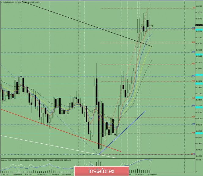 Технический анализ на неделю с 14 по 19 сентября по валютной паре EUR/USDИнстаФорекс - Instaforex, 5 лет назад Трендовый анализ. На этой неделе цена от уровня 1.1846 (закрытие последней недельной свечи) может продолжить движение вверх с целью 1.1917 верхний фрактал (недельная свеча от 06.09.2020). При тестирование этого уровня - продолжение работы вверх с целью 1.2010 - следующий верхний фрактал (красная пунктирная линия). От этой линии возможен откат вниз. Рис. 1 (недельный график). Комплексный анализ: - индикаторный анализ – вверх; - уровни Фибоначчи – вверх; - объёмы – вверх; - свечной анализ – нейтрально; - трендовый анализ – вверх; - линии Боллинджера – вверх; - месячный график – вверх. Вывод по комплексному анализу - восходящее движение. Общий итог расчёта свечи валютной пары EUR/USD по недельному графику: цена на неделе, вероятно, будет иметь восходящую тенденцию, с отсутствием нижней тени у недельной белой свечи (понедельник - вверх) и наличием нижней тени (пятница - вниз). Первая верхняя цель 1.1917 верхний фрактал (недельная свеча от 06.09.2020). При тестирование этого уровня - продолжение работы вверх с целью 1.2010 - следующий верхний фрактал (красная пунктирная линия). Маловероятный сценарий: при движении вверх и достижения верхнего фрактала 1.1917 (недельная свеча от 06.09.2020) цена может начать работу вниз, с целью 1.1685 откатный уровень 23.6% (красная пунктирная линия). Материал предоставлен компанией InstaForex - www.instaforex.com |