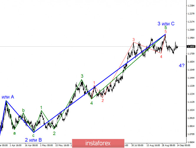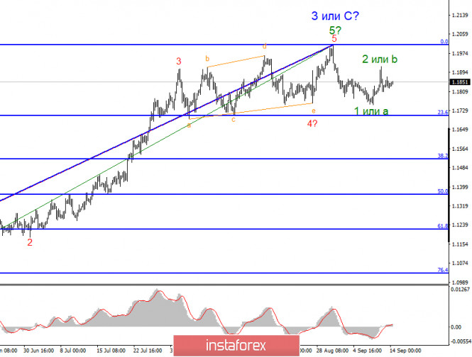 Анализ EUR/USD 14 сентября. Рынки в ожидании ключевого события недели – заседание FOMC.ИнстаФорекс - Instaforex, 5 лет назад Волновая разметка инструмента EUR/USD в глобальном плане выглядит вполне убедительно. Отход котировок от достигнутых максимумов подтверждает предположение о завершении построения волны 3 или С. Волна 4 (предполагаемая) приобретает трехволновой вид, по крайней мере в ней теперь четко прослеживаются волны 1 и 2 или a и b. Таким образом, уже в ближайшее время может начаться новое снижение котировок. Американской валюте при этом очень нужна поддержка новостного фона. Мы видим, как неохотно рынки инвестируют в доллар. Таким образом, волна 4 может получиться не протяженной, а весь участок тренда, берущий свое начало еще в марте, принять 5-и волновой вид. Волновая разметка меньшего масштаба показывает, что предполагаемая волна 5 в 5 в 3 или С завершила свое построение. Если это действительно так, то снижение котировок продолжится с целями, расположенными около уровня 23,6% по Фибоначчи в рамках нисходящей волны с в 4 или, возможно, даже нового нисходящего набора волн. На данный момент мы видим, что первая и вторая волны в составе новой глобальной волны завершены, таким образом, ожидаем нового снижения котировок инструмента. В пятницу, 11 сентября, большого количества новостей и отчетов не было. В Америке вышел отчет по индексу потребительских цен за июль, который, безусловно, мог порадовать покупателей американской валюты. Но рынки в конце рабочей недели не имели желания активно торговать и довели ее до конца в спокойном тоне. Тем не менее инфляция в США начала ускоряться, что дает надежды на более быстрое восстановление экономики. Правда, после сильнейшего падения на 32% во втором квартале экономика все равно будет восстанавливаться долго. Вероятно, дольше и тяжелее, чем европейская. А значит именно евровалюта сейчас остается фаворитом рынков. Я обращаю внимание, что доллар США повышается в последние 5-6 недель весьма неохотно. Таким образом, это означает, что рынки не формируют дополнительный спрос на доллар США. Таким образом, построение коррекционной волны 4 выглядит сейчас наиболее вероятным вариантом, после чего будет возобновлено повышение инструмента. На этой неделе состоится важное событие – заседание ФРС. Скорее всего, ключевая ставка и объемы программы выкупа активов с рынка останутся неизменными. Таким образом, наибольшее внимание будет уделено выступлению председателю ФРС Джерому Пауэллу. Он может вновь говорить об инфляции, об изменении подхода к корреляции инфляционных процессов и денежно-кредитной политики. Однако предугадать сейчас, что сообщит Пауэлл, невозможно. На прошлой неделе Кристин Лагард вроде бы не сообщила ничего оптимистичного для евровалюты, тем не менее та выросла на 100 пунктов. Таким образом, реакция на заседание FOMС и выступление Пауэлла должны быть, но вот какие? Общие выводы и рекомендации: Пара Евро-Доллар предположительно завершила построение глобальной волны 3 или С и второй коррекционной волны в составе участка тренда, берущего свое начало 1 сентября. Таким образом, в данное время я рекомендую продажи инструмента с целями, расположенными около расчетных отметок 1,1706 и 1,1520, что соответствует 23,6% и 38,2% по Фибоначчи, по каждому сигналу MACD вниз. Я рассчитываю на построение нисходящей волны с в 4. Поте