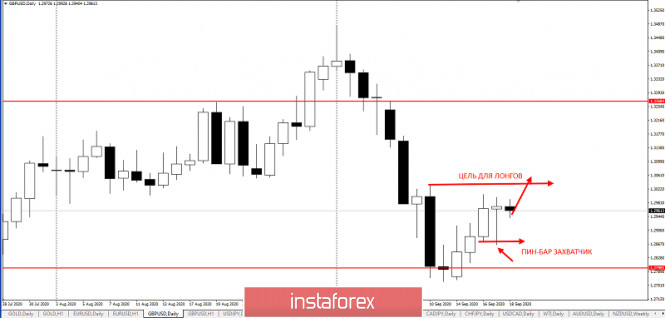 Торговая идея по GBPUSD до 1,3ИнстаФорекс - Instaforex, 5 лет назад Добрый день, уважаемые трейдеры! Представляю вашему вниманию торговую идею по GBPUSD. Эта идея является логическим продолжением идеи от 16 сентября: https://www.instaforex.com/ru/forex_analysis/25948... Но пока по ближним целям - котировки 1,3. Итак, вчера день закрылся т.н. пин баром -захватчиком в тенденции, который обновил минимум вчерашнего дня и оставил хорошие цели для похода наверх: Предлагаю поработать на повышение в рамках бычьей тенденции в структуре АВС: Рентабельность сделки от текущих цен 1 к 1. Лонги будут актуальны до пробоя минимума вчерашнего дня. |
