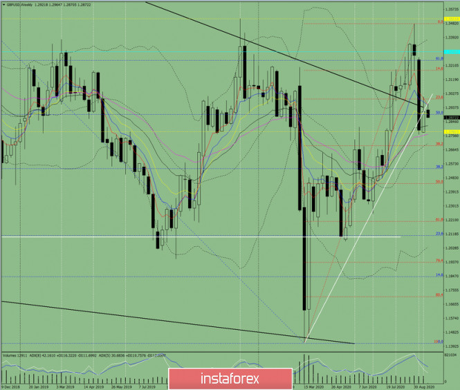 Технический анализ на неделю с 21 по 26 сентября по валютной паре GBP/USDИнстаФорекс - Instaforex, 5 лет назад Трендовый анализ. На этой неделе цена от уровня 1.2912 (закрытие последней недельной свечи) будет двигаться вниз с целью достижения исторического уровня поддержки 1.2781 (жёлтая пунктирная линия) и в случае пробития этой линии дальнейшее движение вниз с целью откатного уровня 38.2% 1.2690 (красная пунктирная линия). Рис. 1 (недельный график). Комплексный анализ: - индикаторный анализ – вниз; - уровни Фибоначчи – вниз; - объёмы – вниз; - свечной анализ – вниз; - трендовый анализ – вниз; - линии Боллинджера – вниз; - месячный график – вниз. Вывод по комплексному анализу - нисходящее движение. Общий итог расчёта свечи валютной пары GBP/USD по недельному графику: цена на неделе, вероятнее всего, будет иметь нисходящую тенденцию с отсутствием первой верхней тени у недельной чёрной свечи (понедельник – вниз) и отсутствием второй нижней тени (пятница – вниз). Первая нижняя цель – достижение исторического уровня поддержки 1.2781 (жёлтая пунктирная линия), и в случае пробития этой линии дальнейшее движение вниз с целью откатного уровня 38.2% – 1.2690 (красная пунктирная линия). Маловероятный сценарий: от уровня 1.2912 (закрытие последней недельной свечи), цена будет двигаться вверх, с целью откатный уровень 61.8% – 1.3059 (синяя пунктирная линия). Материал предоставлен компанией InstaForex - www.instaforex.com |