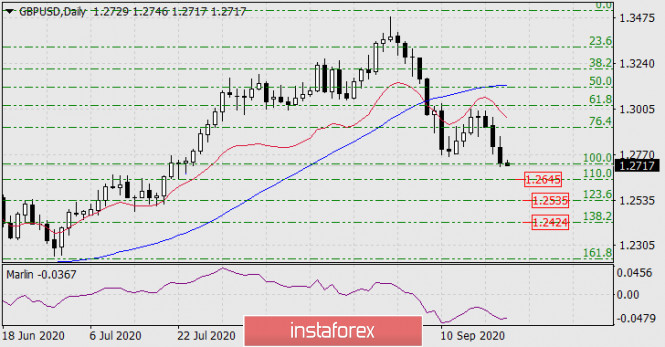 Прогноз по GBP/USD на 23 сентября 2020 годаИнстаФорекс - Instaforex, 5 лет назад GBP/USD Теперь у цены выбор – отправится в коррекцию прямо сейчас, либо позднее от уровня 1.2645. Впрочем, если коррекция начнётся от текущих уровней, то она, скорее всего, приобретёт вид горизонтальной консолидации так как формация не сильная. Далее у цены следующие цели по уровням Фибоначчи: 1.2535, 1.2424.