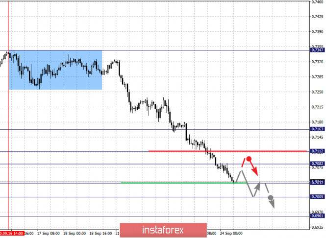 Фрактальный анализ по основным валютным парам на 24 сентябряИнстаФорекс - Instaforex, 5 лет назад Прогноз на 24 сентября: Аналитический обзор валютных пар в масштабе Н1: По паре Евро/Доллар ключевыми уровнями в масштабе Н1 являются: 1.1786, 1.1744, 1.1710, 1.1684, 1.1624, 1.1593, 1.1541 и 1.1509. Здесь, мы следим за нисходящей структурой от 21 сентября. Краткосрочное нисходящее движение, ожидаем в коридоре 1.1624 – 1.1593, пробой уровня 1.1593 приведет к выраженному нисходящему движению, здесь цель – 1.1541. Потенциальным значением для низа, считаем уровень 1.1509, по достижении которого, ожидаем консолидацию, а также откат к верху. Краткосрочное восходящее движение, возможно в коридоре 1.1710 – 1.1684, пробой последнего значения приведет к углубленной коррекции, здесь цель – 1.1744, этот уровень является ключевой поддержкой для нисходящей структуры, его пробой будет располагать к формированию начальных условий для восходящего цикла, в данном случае потенциальная цель – 1.1786. Основная тенденция – нисходящая структура от 21 сентября Торговые рекомендации: Buy: 1.1684 Take profit: 1.1710 Buy: 1.1712 Take profit: 1.1744 Sell: 1.1623 Take profit: 1.1594 Sell: 1.1592 Take profit: 1.1541 По паре Фунт/Доллар ключевыми уровнями в масштабе Н1 являются: 1.2866, 1.2797, 1.2754, 1.2691, 1.2606, 1.2546, 1.2463 и 1.2417. Здесь, мы следим за развитием нисходящей структуры от 18 сентября. Продолжения движения к низу, ожидаем после пробоя 1.2690, в данном случае цель – 1.2606, в коридоре 1.2606 – 1.2546 краткосрочное нисходящее движение, а также консолидация. Пробой уровня 1.2546 приведет к выраженному нисходящему движению, здесь цель – 1.2463. Потенциальным значением для низа, считаем уровень 1.2417, по достижении которого, ожидаем консолидацию, а также откат к верху. Краткосрочное восходящее движение, ожидаем в коридоре 1.2754 – 1.2797, пробой последнего значения приведет к углубленной коррекции, здесь цель – 1.2866, этот уровень является ключевой поддержкой для нисходящей структуры. Основная тенденция – нисходящая структура от 18 сентября Торговые рекомендации: Buy: 1.2754 Take profit: 1.2796 Buy: 1.2798 Take profit: 1.2866 Sell: 1.2689 Take profit: 1.2607 Sell: 1.2605 Take profit: 1.2547 По паре Доллар/Франк ключевыми уровня в масштабе Н1 являются: 0.9321, 0.9279, 0.9259, 0.9215, 0.9191, 0.9160 и 0.9132. Здесь, мы следим за восходящей структурой от 16 сентября. Краткосрочное восходящее движение, ожидаем в коридоре 0.9259 – 0.9279, пробой последнего значения позволит рассчитывать на движение к потенциальной цели – 0.9321, по достижении которого, ожидаем откат к низу. Краткосрочное нисходящее движение, возможно в коридоре 0.9215 – 0.9191, пробой последнего значения приведет к углубленной коррекции, здесь цель – 0.9160, этот уровень является ключевой поддержкой для верха, его проход ценой будет располагать к формированию начальных условий для нисходящего цикла, здесь первая потенциальная цель – 0.9132. Основная тенденция – восходящий цикл от 16 сентября Торговые рекомендации: Buy: 0.9259 Take profit: 0.9279 Buy: 0.9281 Take profit: 0.9320 Sell: 0.9215 Take profit: 0.9192 Sell: 0.9189 Take profit: 0.9160 По паре Доллар/Иена ключевыми уровнями в масштабе являются: 106.21, 106.02, 105.73, 105.51, 105.28, 105.11 и 104.86. Здесь, мы следим за развитием восходящей структуры от 21 сентября. Краткосрочное восходящее движение, ожидаем в коридоре 105.51 – 105.73, пробой последнего значения приведет к выраженному восходящему движению, здесь цель – 106.02. Потенциальным значением для верха, считаем уровень 106.21, по достижении которого, ожидаем консолидацию, а также откат к низу. Краткосрочное нисходящее движен