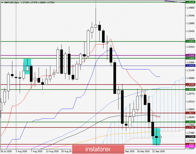 Анализ и прогноз по GBP/USD на 24 сентября 2020 годаИнстаФорекс - Instaforex, 5 лет назад Доброго времени суток, уважаемые трейдеры! В отличие от евро/доллара, на вчерашних торгах валютная пара GBP/USD продемонстрировала сигнал к развороту. Что это будет (если будет) - коррекция курса или на самом деле разворот - сказать пока не представляется возможным. Скорее всего, такая динамика британской валюты была обусловлена высказыванием высокопоставленного чиновника о том, что Великобритания готова заключить сделку по выходу из Европейского Союза чуть ли не любой ценой. Однако слова остаются пока всего лишь словами, а за ними должны последовать конкретные действия, коих на данный момент пока не наблюдается. Сегодня в 17:00 (мск) состоится выступление главы Банка Англии Эндрю Бэйли. Возможно, главный английский банкир в своей речи затронет тему Brexit и прольёт больше света на этот важнейший вопрос. По крайней мере, сегодняшняя речь главы Банка Англии может оказать существенное влияние на ценовую динамику британского фунта стерлингов. Daily Как видим, по итогам вчерашних торгов на дневном графике появилась свеча дожи, которую с полным основанием можно считать разворотной моделью свечного анализа. Необходимо обратить внимание, что вчерашняя свеча появилась после попытки пробить сильный технический уровень 1.2680, которая оказалась несостоявшейся. Впрочем, и поднять цену выше 200 экспоненциальной скользящей средней и вернуть её в пределы облака индикатора Ишимоку у быков по фунту также не получилось. В этой связи крайне важным будет то, как завершится сегодняшняя торговая сессия. Если игрокам на повышение курса удастся поднять котировку выше оранжевой 200 ЕМА и завершить торги в пределах облака Ишимоку, вероятность разворота станет более реалистичной. В противном случае ситуация по gbp/usd продолжит оставаться под контролем медведей. Если же сегодняшний день завершится ниже вчерашних минимумов 1.2674, предполагаемый разворотный свечной сигнал будет поломан, что сулит паре дальнейшее снижение, где ближайшей целью станет важный технический уровень 1.2600. Н4 Несмотря на вчерашнюю дневную свечу, которая может считаться разворотной, воспринимать это как факт ещё слишком рано. Нужно подтверждение в виде сегодняшнего роста пары. В моменте написания обзора фунт/доллар торгуется вблизи 1.2713. В случае продолжения восходящего движения необходимо возвращать торги выше 1.2800. Окончательно убедит в корректировке или развороте курса пробой сиреневой линии сопротивления, которая проведена по точкам 1.3482-1.2998. Правда, перед этим придётся проходить вверх 50 простую скользящую среднюю, которая проходит прямо на уровне сопротивления 1.2860. По торговым рекомендациям основной идеей по-прежнему остаются продажи, которые лучше рассматривать после коррекционных подъёмов вверх. Предлагаю дождаться роста пары в ценовую зону 1.2850-1.2860 и после появления там разворотных моделей свечного анализа продавать британскую валюту с ближайшей целью вблизи 1.2700. Более агрессивные и рискованные продажи можно попробовать на попытках пары вернуться выше 1.2800, но и в этом случае лучше увидеть подтверждающие сигналы и только после этого открывать по GBP/USD короткие позиции с той ближайшей целью на 1.2700. Успехов! Материал предоставлен компанией InstaForex - www.instaforex.com |