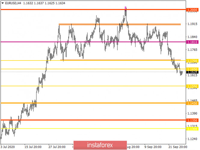 Горящий прогноз по EUR/USD на 28.09.2020 и торговая рекомендацияИнстаФорекс - Instaforex, 5 лет назад Единая европейская валюта продолжает оставаться под давление, хотя американские статистические данные оказались несколько хуже прогнозов. Пятничные данные по заказам на товары длительного пользования показали их рост лишь на 0,4%. Ожидалось, что они увеличатся на 2,0%. Правда предыдущие данные пересмотрели в лучшую сторону, и в июле заказы выросли не на 11,2%, а на 11,7%. Но жданный пересмотр не компенсирует более слабого роста в августе. Тем не менее, речь все равно идет о росте заказов, причем уже в течении четырех месяцев подряд. Так что и промышленность, и розница, сохраняют потенциал роста. Тем не менее, судя по всему, эти данные и вовсе никак не сказались на рынке, ведь ослабление единой европейской валюты, сколь незначительным оно бы не было, завершилось до публикации данных по заказам. Так что единая европейская валюта скорее снижается по инерции, на фоне глобального укрепления доллара, который пока воспринимается как защитный инструмент. По большей части, это связано с опасениями инвесторов относительно возможности введения полномасштабных карантинных мер по всей Европе. В самих же Соединенных Штатах пока о подобном даже и не говорят. Соединенные Штаты увлечены подготовкой к предстоящим президентским выборам, и введение каких-то ограничений может помешать проведению выборов. Впервые в истории Соединенных Штатов. Никто из представителей американской политической элиты не решиться на подобное, так как это станет его политическим самоубийством. Нарушать традиции нельзя. Даже Рузвельт, в 1944 году, несмотря на Вторую Мировую Войну, не решился перенести президентские выборы. Так что, инвесторам пока нечего беспокоится по поводу возможности ужесточения противоэпидемиологических мер в Соединенных Штатах, следовательно, доллар выглядит несколько предпочтительнее. И сегодня, в условиях совершенно пустого макроэкономического календаря, вполне возможно дальнейшее, инерционное, ослабление единой европейской валюты. Хотя его масштабы будут довольно скромными. Заказы на товары длительного пользования (Соединенные Штаты): Валютная пара евро/доллар придерживается нисходящему развитию, в ходе чего котировке удалось зафиксироваться ниже ценового уровня 1,1650, что считается очередным сигналом на продажу. Последовательное нисходящее развитие и завершение флотовой формации может стать началом в среднесрочной тенденции. Если исходить из текущего расположения котировки, то можно увидеть откат от значения 1,1612 в сторону 1,1640 , что не нарушением общий цикл нисходящего развития. Относительно рыночной динамики фиксируется незначительное замедление, но как только обновится локальный минимум, возникнет очередное ускорение. Рассматривая торговый график в общем плане (дневной период) видно как зарождается нисходящая инерция, где среднесрочный восходящий тренд попал под удар возможного изменения рыночного настроя. Можно предположить, что текущий откат имеет временную форму, где в случае обновления минимума 1,1612 возникнет очередной виток коротких позиций, который приведет нас в сторону значения 1,1550. Альтернативный сценарий рассматривает затягивание процесса отката в сторону ранее пройденного уровня 1,1650. С точки зрения комплексного индикаторного 