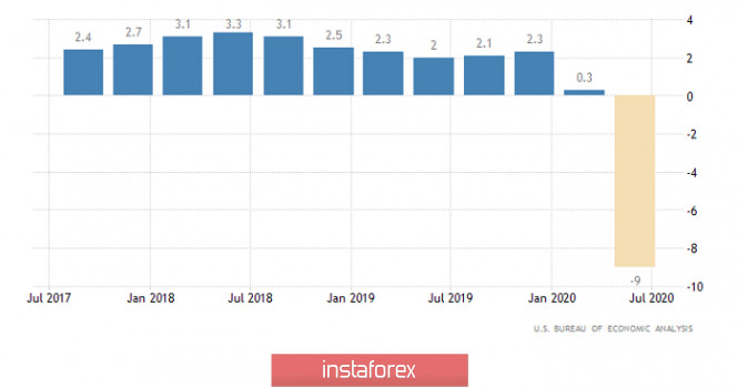 Горящий прогноз по EUR/USD на 01.10.2020 и торговая рекомендацияИнстаФорекс - Instaforex, 5 лет назад Доллар вчера оказался под серьезнейшим давлением и терял свои позиции против всех основных валют. При этом происходило все это уже после публикации всех возможных статистических данных, которые банально были проигнорированы. А все дело в возросшем беспокойстве инвесторов относительно устойчивости восстановления американской экономики. Данный процесс оказался под серьезной угрозой. Конгресс все никак не может принять хоть какой-то план поддержки экономики, уже несколько крупных компаний официально заявили о том, что планируют массовые сокращения. И речь идет о десятках тысяч рабочих мест. Учитывая, что это касается крупнейших компаний, то, естественно, что вслед за ними сокращать персонал будут и их смежники. Иными словами, грядущие массовые увольнения затронут сотни тысяч людей. Значит, наблюдаемое восстановление рынка труда может оказаться лишь временным явлением. Конечно же, все крупные компании, объявившие о будущих сокращениях, аргументируют это необходимостью принятия мер государственной поддержки экономики. При этом статистические данные в Соединенных Штатах вышли несколько лучше прогнозов. Так, итоговые данные по ВВП за второй квартал показали, что экономика снижается не на -9,1%, а на -9,0%. Правда, еще в первом квартале экономика росла на 0,3%. Тем не менее спад оказался чуть меньшим, нежели прогнозировалось. Более того, по данным ADP, занятость выросла на 749 тыс. И это при том, что прогнозировался рост на 610 тыс. Так что в реальности все оказалось заметно лучше, нежели ожидалось. Правда, в свете заявлений целого ряда крупнейших работодателей изменения занятости уже не так интересны. Изменение ВВП (Соединенные Штаты): Судя по всему, макроэкономическую статистику будут игнорировать и дальше. Как минимум, до завтрашней публикации доклада Министерства труда Соединенных Штатов. Таким образом, ожидаемый рост уровня безработицы в Европе с 7,9% до 8,2% останется без внимания. Хотя негативный характер этих данных будет компенсироваться замедлением темпов спада цен производителей с -3,3% до -2,6%. Уровень безработицы (Европа): Данные же по заявкам на пособия по безработице в Соединенных Штатах наверняка останутся без внимания. Как ни крути, но их значение гораздо меньше, нежели изменения занятости. Тем более что в свете планов крупнейших работодателей уменьшение числа обращений за пособиями выглядит как временное явление. Тем не менее число первичных заявок может уменьшиться с 870 тыс. до 855 тыс. Число же повторных обращений с 12 580 тыс. до 12 300 тыс. Число повторных заявок на пособия по безработице (Соединенные Штаты): Валютная пара евро/доллар находится в коррекционной фазе от локального минимума 1,1612, вследствие чего участникам рынка удалось достичь переменного уровня сопротивления 1,1755, где в настоящее время движется котировка. Если исходить из текущего расположения котировки, то видна попытка пробоя уровня 1,1755, но четких фиксаций цены за его приделами не наблюдалось. Относительно рыночной динамики фиксируется высокая активность, где коэффициент спекулятивных операций продолжает расти. Рассматривая торговый график в общем плане (дневной период), виден коррекционный ход относительно снижения 1,2010 ---> 1,1612, где котировка в очередной раз вернулась в 