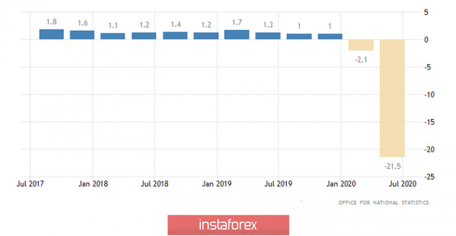 Торговый план по EUR/USD и GBP/USD на 01.10.2020ИнстаФорекс - Instaforex, 5 лет назад Откровенно говоря, рынок вообще игнорирует какие-либо макроэкономические данные. По крайней мере, вчера все так и было. Но уже после публикации всяческих статистических данных доллар вдруг оказался под серьезнейшим давлением. Причем это нашло свое отражение по всем основным валютам. Инвесторы неожиданно забеспокоились по поводу перспектив восстановления американской экономики. Дело в том, что в отличие от Европы Соединенные Штаты все никак не могут принять какой-нибудь план поддержки экономики. Вместо этого демократы отвергают план республиканцев и наоборот. Просто через месяц состоятся президентские выборы, и американские политики заняты более важными вещами, нежели какая-то там экономика. К сожалению, но американский политический класс все чаще и чаще ставит свои личные интересы превыше интересов общества. Тем более когда есть отличная возможность объявить себя спасителями Америки. Правда, претендентов аж двое. Демократы и республиканцы. Вот и не получается хоть о чем-то там договориться. При этом демократы имеют в Конгрессе большинство, а значит именно они и препятствуют принятию мер поддержки. Сначала они отвергли план республиканцев, а теперь долго и мучительно обсуждают собственный план. Все похоже на то, что они просто ждут итогов президентских выборов, после которых планируют принять свой план, а ответственность за провал в экономике повесить на Дональда Трампа. И все идет к тому, что до выборов никакого плана поддержки экономики принято так и не будет. Тем временем несколько крупных американских компаний объявили о предстоящих массовых сокращениях. Как раз вчера об этом объявили два крупнейших авиаперевозчика. И счет идет на десятки тысяч рабочих мест. И они не единственные, кто объявил о подобных планах. А аргументируется все это тем, что крайне необходимы меры поддержки. Особенно в виде прямых денежных вливаний. Иными словами, бизнес прямым текстом говорит о том, что если срочно не будет принят план поддержки экономики, то начнутся массовые увольнения. Самое же страшное заключается в том, что крупный бизнес по факту и формирует рынок труда. Одно рабочее место в крупном бизнесе, особенно если речь идет о промышленности, создает до десяти рабочих мест в сфере услуг, в которой наиболее широко представлены как раз малый и средний бизнес. То есть, если крупные компании планируют сократить несколько десятков работников, то вся экономика тут же потеряет сотни тысяч рабочих мест. Мораль всей этой басни в том, что текущее восстановление рынка труда, да и всей экономики, может быть всего лишь временным явлением. Именно это и напугало инвесторов. И пугать будет еще долго. Если же говорить о макроэкономической статистике, которую вчера действительно проигнорировали, то она вся вышла несколько лучше прогнозов. Так, если предварительные оценки ВВП Великобритании за второй квартал показывали ускорение темпов экономического спада с -2,1% до -21,7%, то итоговые показали, что они ускорились до -21,5%. Конечно, разница несущественная. Но все же хоть немного, да лучше прогнозов. Изменение ВВП (Великобритания): Аналогичная ситуация и в Соединенных Штатах, где еще недавно предполагалось, что во втором квартале темпы спада ВВП составляют -9,1%. На самом деле экономика сни