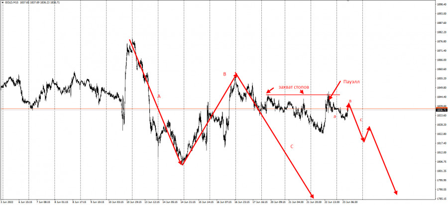 Последний шанс продать золото перед обваломИнстаФорекс - Instaforex, 3 года назад Добрый день, уважаемые трейдеры! Представляю вашему вниманию торговую идею по золоту. Итак, вчерашнее выступление Пауэлла в Конгрессе несло в себе ту же риторику, что и неделю назад, т.к. никаких новых вводных за это время получено не было. Но примечательно то, что перед самим выступление Пауэлла по многим инструментам, в том числе и золоту, наблюдалось локальное ослабление доллара, ну а после выступления американская сессия закрылась в красной зоне, что снова подтверждает шортовый сценарий развития движения по инструменту: Фактически имеем трёхволновую структуру "АВС", где волной А выступает вчерашняя шортовая инициатива. Первой целью фиксации коротких позиций будет уровень 1780: Основной целью фиксации шортов является уровень 1675: Торговая идея представлена в рамках метода "Price Action" и "Охота за стопами". |