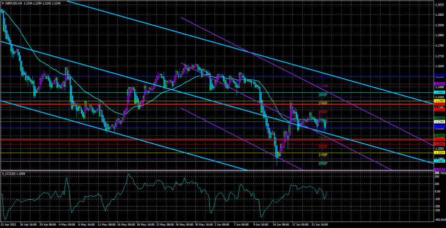 Обзор пары GBP/USD. 24 июня. А где фунт? Кто-нибудь видел фунт стерлингов?ИнстаФорекс - Instaforex, 3 года назад Валютная пара GBP/USD в четверг торговалась, как на поминках. В последние несколько дней фунт вообще не считает своей обязанностью показывать хорошие, трендовые движения и, если по паре евро/доллар техническая картина похожа на флэт, то техника по паре фунт/доллар очень сильно похожа на классический флэт. Однако движения обеих главных валютных пар очень похожи, поэтому можно сделать только тот вывод, который мы неоднократно озвучивали ранее: в данное время у трейдеров в приоритете факторы, связанные с долларом, США и ФРС, а также геополитикой, поэтому фунт и евро торгуются практически идентично. Техника показывает, что фунт точно также, как и евро, не может даже толком скорректироваться. Благодаря двум заседаниям центральных банков на прошлой неделе он вырос на «нереальные» 450 пунктов, но уже несколько дней подряд мнется и не знает, как же ему поскорее возобновить глобальный нисходящий тренд. Мы допускаем, что еще несколько недель мучений и мытарств и фунт все же сумеет вырасти в область своего последнего локального максимума около уровня 1,2650. Но даже эта отметка сейчас выглядит недосягаемой. Не говоря уже о чем-то большем.Таким образом, по большому счету, сейчас не имеет никакого значения тот факт, что Шотландия может провести референдум о независимости уже в этом году, или тот факт, что Евросоюз и Великобритания отправятся в Суд решать проблему с «североирландским протоколом». Неважны цены на газ и нефть... уже неважны. Сейчас все связано с американской экономикой, действиями ФРС, статусом доллара «резервной валюты мира». По крайней мере, движения обеих пар показывают, что от Евросоюза и Британии сейчас не зависит практически ничего. Поэтому в глобальном плане мы считаем, что нисходящий тренд сохранится. Нет ни одного основания ожидать, что геополитический конфликт в Восточной Европе закончится в ближайшее время, а ситуация стабилизируется. Нет ни одного основания предполагать, что ФРС откажется от своего курса по ужесточению монетарной политики. А значит все козыри остаются на руках доллара. Фунт стерлингов находится в полнейшем унынии.Вчера мы уже говорили, что инфляция в Великобритании продолжила ускоряться, но вообще-то кому какая разница? Фунт стерлингов сначала немного упал, потом немного вырос и остался в том же флэте, что и до этого. Повышение вероятности дальнейшего ужесточения монетарной политики Банка Англии? В очередной раз никакого влияния на настроение трейдеров не оказало. Таким образом, про британскую инфляцию можно забыть на месяц, а про Банк Англии – до начала августа, когда состоится очередное его заседание, на котором в шестой раз подряд будет повышена ставка, что в шестой раз подряд трейдеры оставят без внимания. Хотим прояснить: рынок может покупать фунт после того, как регулятор повышает ставку, но в глобальном плане это ни на что не влияет. Нисходящий тренд, который сохраняется уже 18 месяцев, продолжает сохраняться. В это же время продолжают терпеть крушение фондовые рынки, криптовалютный рынок, продолжают падать рисковые активы и валюты, к коим относятся и евро с фунтом. То есть мы имеем глобальную тенденцию, когда спрос растет на наиболее безопасные активы. Такие, как банковские депозиты и государств