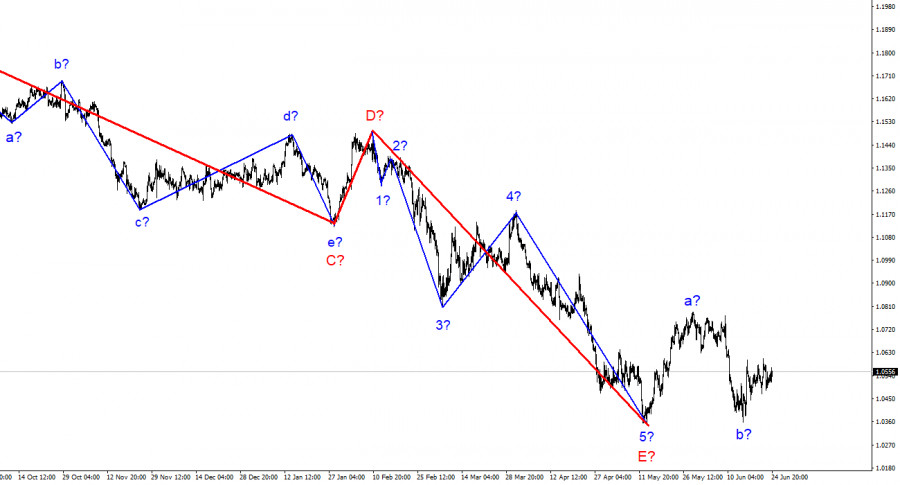 Анализ EUR/USD. 25 июня. Неделя завершилась так, как ей и подобает.ИнстаФорекс - Instaforex, 3 года назад Волновая разметка 4-часового графика для инструмента Евро/Доллар продолжает выглядеть убедительно и не требует внесения коррективов. Инструмент завершил построение нисходящего участка тренда. Если текущая волновая разметка верна, то в данное время началось построение нового повышательного участка тренда. Он может получиться трех волновым, а может - импульсным. На текущий момент проглядываются две волны нового участка тренда. Волна а завершена, а волна b – также предположительно завершена. Если это действительно так, то сейчас началось построение восходящей волны с. Инструмент не снизился под лоу нисходящего участка тренда, поэтому волновая разметка пока сохраняет свою целостность. Однако отмечу, что нисходящий участок тренда может усложнить свою внутреннюю волновую структуру и принять гораздо более протяженный вид. К сожалению, очень перспективная волновая разметка может быть сломана из-за новостного фона, который привел к сильному снижению спроса на евровалюту. Но на текущий момент шансы на построение восходящей волны с сохраняются. Помешать может только новостной фон. Неделя выдалась скучной.Инструмент Евро/Доллар в пятницу повысился на 30 базовых пунктов. Активность рынка была очень низкой. Напомню, что в понедельник и вторник новостной практически отсутствовал для евро и доллара. Такая же картина наблюдалась и в пятницу, когда самым важным отчетом дня стал индекс настроения потребителей от Мичиганского университета. Ожидания рынка были низкими, но значение отчета оказалось еще ниже – всего 50,0. В начале 2020 года оно составляло больше 100 пунктов, а год назад – около 80. Таким образом, сейчас мы наблюдаем самое низкое значение за всю историю исследования этого показателя(больше 60 лет). Хоть сам по себе показатель и не является важным, все же его снижение на исторические лоу что-нибудь да говорит. Рынок на фоне этого индекса немного опустил доллар, но очень незначительно. Наиболее важные события недели – выступления Джерома Пауэлла в Конгрессе тоже не привлекли внимания рынка. Пауэлл из раза в раз повторяет одни и те же высказывания, поэтому рынок просто не видит причин для себя каждый раз отыгрывать одно и тоже. Сейчас очевидно всем, что процентная ставка ФРС будет расти, несмотря ни на что. Можно также вспомнить индексы деловой активности в сферах производства и услуг(а также композитные индексы) по ЕС и США. Все шесть индексов снизились в июне, указывая на ощутимое падение деловой активности. Но так как индексы упали и в США, и в Евросоюзе, то ни евро, ни доллар не смогли из этих данных извлечь для себя выгоды. В итоге мы получили неделю, когда все пять дней инструмент двигался горизонтально. Волновая разметка абсолютно не изменилась, потому что движения как таковые отсутствовали. Следовательно, я продолжаю ожидать построения восходящей волны, согласно текущей волновой разметке. Евровалюте трудно, но она все же имеет шансы вырасти до 8 фигуры. Общие выводы.Исходя из проведенного анализа, я делаю вывод, что построение нисходящего участка тренда завершено. Если так, то сейчас можно покупать инструмент с целями, расположенными около расчетной отметки 1,0947, что приравнивается к 161,8% по Фибоначчи, по каждому сигналу MACD «вверх». Волн
