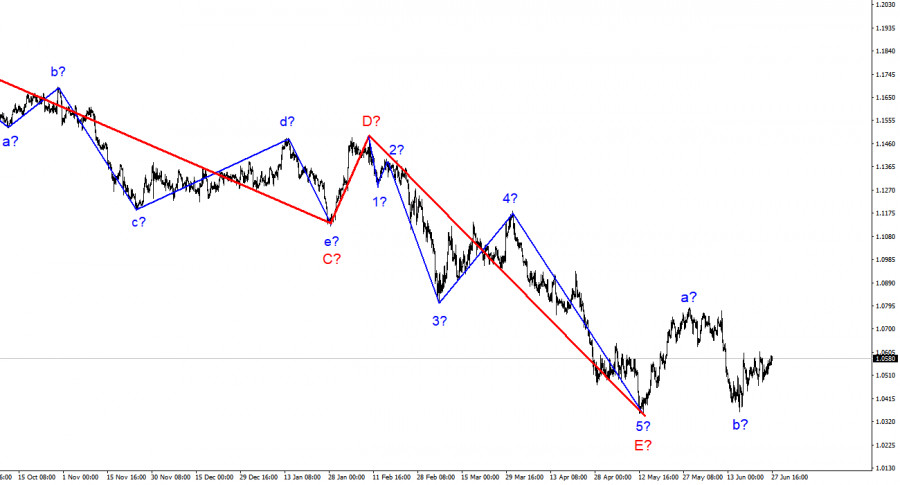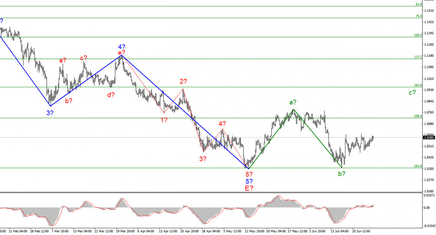 Анализ EUR/USD. 27 июня. Ждем нового роста инфляции в еврозонеИнстаФорекс - Instaforex, 3 года назад Волновая разметка 4-часового графика для инструмента Евро/Доллар продолжает выглядеть убедительно и не требует внесения коррективов. Помимо этого, разметка не меняется в последние недели, так как на рынке полный штиль. Инструмент завершил построение нисходящего участка тренда. Если текущая волновая разметка верна, то в данное время началось построение нового повышательного участка тренда. Он может получиться трехволновым, а может - импульсным. На текущий момент проглядываются две волны нового участка тренда. Волна а завершена, а волна b – также предположительно завершена. Если это действительно так, то сейчас началось построение восходящей волны с. Инструмент не снизился под лоу нисходящего участка тренда, поэтому волновая разметка пока сохраняет свою целостность. Однако отмечу, что нисходящий участок тренда может усложнить свою внутреннюю волновую структуру и принять гораздо более протяженный вид. К сожалению, очень перспективная волновая разметка может быть сломана из-за новостного фона. Но на текущий момент шансы на построение восходящей волны с сохраняются. Помешать может только новостной фон. Выступления Лагард и европейская инфляцияИнструмент Евро/Доллар в понедельник повысился на 25 базовых пунктов. Активность рынка остается очень низкой, каковой она была и в пятницу, несмотря на то что в пятницу была буквально парочка отчетов и сегодня тоже. Тем не менее после нескольких относительно активных дней рынок взял паузу, которая длится уже вторые сутки. Безусловно, в таких условиях у волновой картину еще меньше шансов на усложнение или изменение. Я по-прежнему жду повышения котировок евро, но, чувствую, ждать можно долго. На этой неделе наиболее интересным, как мне кажется, будет отчет по инфляции в Евросоюзе. Напомню, что для всех центральных банков вопрос снижения инфляции сейчас является наиболее важным. Таким образом, каждый новый отчет, который указывает на ее рост, это камень в огород центрального банка. А в случае с Европейским центральным банков камней в огороде уже очень много. Рынок ждет, что инфляция в ЕС вырастет до 8,4%. Вроде бы, темпы роста этого показателя немного замедляются, но я считаю, что это просто совпадение. ЕЦБ еще ни разу не повысил ставку и только в июле полностью откажется от программы количественного стимулирования. Таким образом, инфляция не имеет оснований для снижения. Тем не менее в следующем месяце ЕЦБ все же может пойти на беспрецедентное для себя событие и повысить ставку в первый раз за долгие годы. Если это случится, то спрос на европейскую валюту может немного вырасти, так как до этого рынок был вынужден смотреть на инструмент через призму ужесточения денежно-кредитной политики только ФРС. Если ЕЦБ хотя бы начнет процесс ужесточения ДКП, это может дать толчок для роста. Однако я также напомню, что и ФРС в следующем месяце может повысить ставку, причем сразу на 75 базисных пунктов. Поэтому евровалюте нужно пользоваться моментом и максимально повышаться, пока этого не произошло. Общие выводыИсходя из проведенного анализа, я делаю вывод, что построение нисходящего участка тренда завершено. Если так, то сейчас можно покупать инструмент с целями, расположенными около расчетной отметки 1,0947, что прир