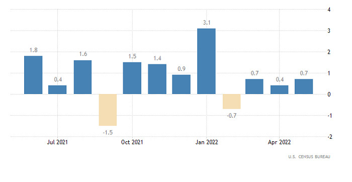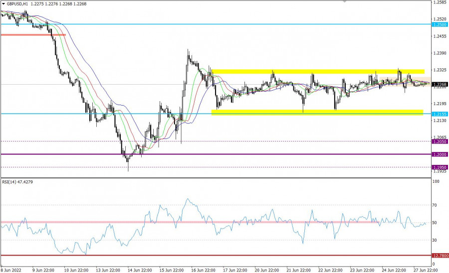 Горящий прогноз по GBP/USD от 28.06.2022ИнстаФорекс - Instaforex, 3 года назад Фунт уверенно подошел к верхней границе диапазона 1,22 - 1,23, и уже готовился ее пробить, для чего ему были нужны лишь данные по заказам на товары длительного пользования в Соединенных Штатах. Предполагалось, что их объем сократится на 0,3%, что стало бы отражением постепенного движения американской экономики в сторону рецессии. Однако, заказы увеличились на 0,7%, что стало полной неожиданностью. Получается, что потребительская активность не снижается, а растет, причем уже третий месяц к ряду. Это противоречит бесчисленным предупреждениям о скором начале спада в экономике. Ведь заказы являются своего рода опережающим индикатором, показывающим состояние потребительской активности. В свою очередь, потребительская активность, это ни что иное, как локомотив американской экономики. И пока она растет, или хотя бы не снижается, никакая рецессия Соединенным Штатам не грозит. Удивляет лишь масштаб укрепления доллара. Рост оказался крайне слабым и незначительным. Это следствие того, что сам показатель является всего лишь косвенным, и выстраивать прямую корреляцию с розничными продажами не стоит. Так как рост заказов лишь указывает на перспективу роста розничных продаж. Не более того. Заказы на товары длительного пользования (Соединенные Штаты): Сегодня же макроэкономический календарь совершенно пуст. И раз уж фунт остался в рамках прежнего диапазона, то стоит ожидать его постепенного движения в направлении нижней границы. Валютная пара GBPUSD второй день подряд движется в пределах верхней границы бокового канала 1.2150/1.2320, что указывает на процесс накопления торговых сил. Технический инструмент RSI в периодах H1 и H4 движется вдоль средней линии 50, что сигнализирует о застое. RSI D1 находится в нижней области индикатора 30/50, что соответствует среднесрочному нисходящему тренду. Индикатор Alligator H1 и H4 имеет множество пересечений между скользящими линиями MA, что подтверждает действующий на рынке застой. Alligator D1 находится в цикле нисходящего тренда, скользящие линии MA направлены вниз. Ожидания и перспективы В данной ситуации сжатие амплитуды внутри действующего флэта служит рычагом, который сосредотачивает на себе обильное внимание со стороны спекулянтов. Тем самым в скором времени на рынке может возникнуть ускорение, которое приведет к одному из возможных сценариев: Отскок цены от верхней границы флэта с последующим ходом в сторону значений 1.2200–1.2150. Пробой верхней границы флэта, где сигнал к покупке возникнет в случае удержания цены выше значения 1.2340 в четырехчасовом периоде. Комплексный индикаторный анализ имеет переменный сигнал в краткосрочном и внутридневном периодах ввиду застоя. В среднесрочном периоде индикаторы ориентированы на нисходящий тренд, это сигнал к продаже. Материал предоставлен компанией InstaForex - www.instaforex.com |