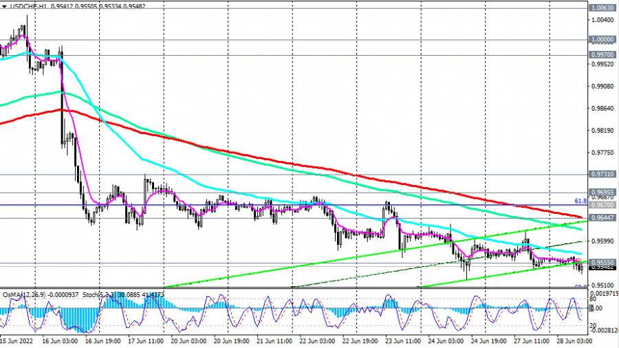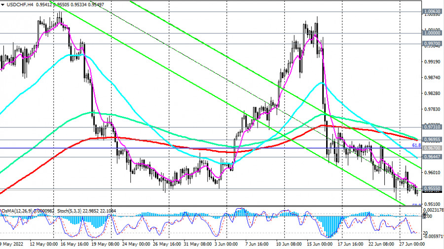 USD/CHF: технический анализ и торговые рекомендации на 28.06.2022ИнстаФорекс - Instaforex, 3 года назад Как мы отметили в нашем сегодняшнем «Фундаментальном анализе», на момент публикации данной статьи USD/CHF торгуется вблизи отметки 0.9550, продолжая снижаться в сторону ключевых уровней поддержки 0.9440 (ЕМА200 на недельном графике), 0.9430 (ЕМА200 на дневном графике). USD/CHF также торгуется в зоне ниже важных краткосрочных уровней сопротивления 0.9695 (ЕМА200 на 4-часовом графике), 0.9645 (ЕМА200 на 1-часовом графике) и уровня сопротивления 0.9670 (ЕМА50 на дневном графике и уровень Фибоначчи 61,8% восходящей коррекции к волне снижения, начавшейся в апреле 2019 года вблизи отметки 1.0235). На пути снижения цены к уровням поддержки 0.9440 и 0.9430 есть еще одна важная цель – уровень поддержки 0.9495 (ЕМА144 на дневном графике и уровень Фибоначчи 50,0%), в зоне которого возможен отскок и рост к уровням сопротивления 0.9645, 0.9670, 0.9695. В случае же успешного пробоя уровня поддержки 0.9495 снижение USD/CHF достигнет наших целей вблизи уровней поддержки 0.9440, 0.9430. Пробой уровня поддержки 0.9395 (ЕМА144, ЕМА50 на недельном графике) может вновь вернуть USD/CHF в зону долгосрочного медвежьего рынка. Как сказал глава НБШ Томас Джордан после заседания банка 16 июня, швейцарский франк больше не является сильно переоцененным. Т.е. он принимает возможность дальнейшего укрепления франка, с чем недавно так последовательно боролись в НБШ, удерживая процентную ставку по депозитам на рекордно низком уровне -0,75% и вмешиваясь в торги на рынке с продажами франка (об особенностях торговли франком см. в статьях EUR/CHF: валютная пара (характеристики, рекомендации и USD/CHF: валютная пара (характеристики, рекомендации). В альтернативном сценарии (после отскока от уровня поддержки 0.9495 и после пробоя локального уровня сопротивления 0.9731) USD/CHF продолжит рост в сторону недавних максимумов выше отметки 1.0000. Пока же предпочтительными остаются короткие позиции. Уровни поддержки: 0.9555, 0.9500, 0.9495, 0.940, 0.9430, 0.9400, 0.9395 Уровни сопротивления: 0.9645, 0.9670, 0.9695, 0.9731, 0.9800, 0.9900, 0.9970, 1.0000, 1.0060