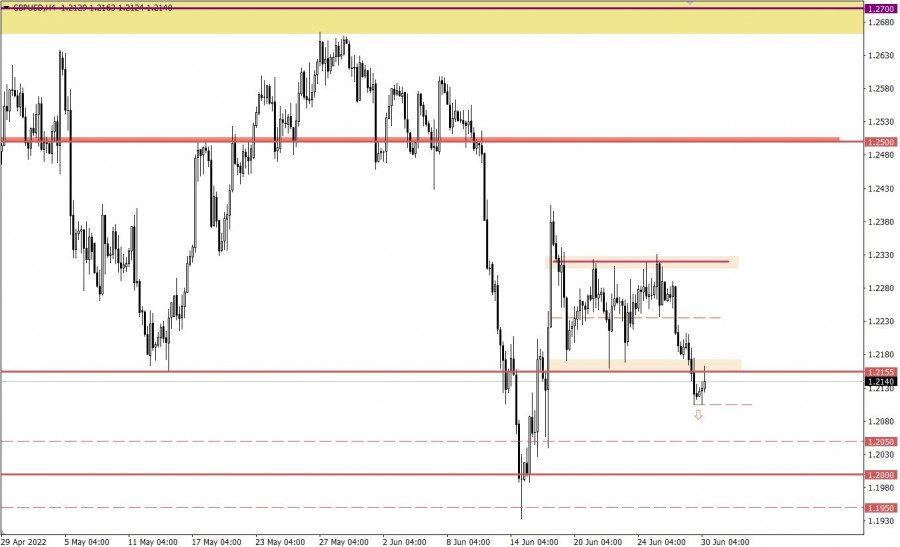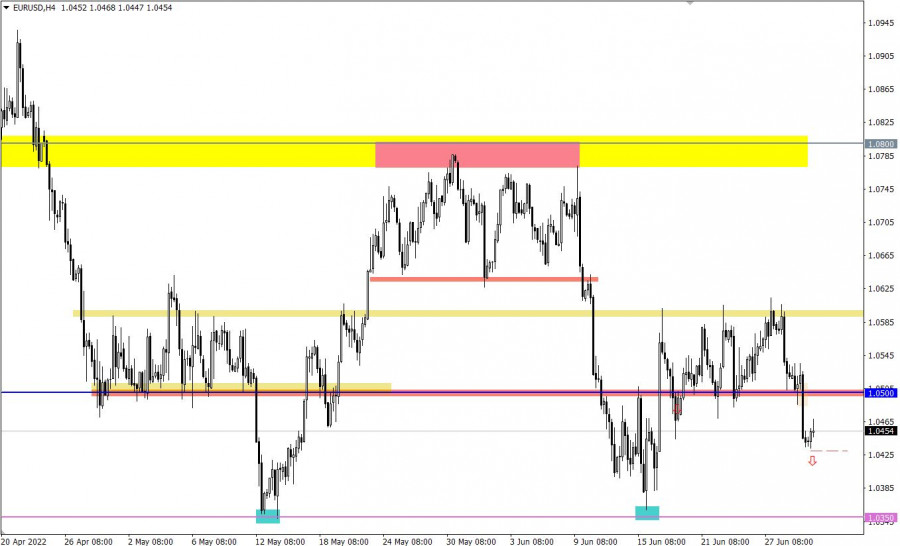 Учимся и анализируем, торговый план для начинающих трейдеров EURUSD и GBPUSD 30.06.22ИнстаФорекс - Instaforex, 3 года назад Детали экономического календаря от 29 июня Третья окончательная оценка по ВВП отразила спад на 1,6%, при том что предварительная оценка составляла -1,5%. Эти данные подкрепляют опасения инвесторов относительно замедления экономического роста. Однако при этом они также могут вынудить ФРС пересмотреть курс более жесткой монетарной политики. Разбор торговых графиков от 29 июняВалютная пара EURUSD завершила построение бокового канала 1.0500/1.0600 пробоем его нижней границы. Этот шаг привел к резкому росту объема коротких позиций, что вызвало распродажу евро. Валютная пара GBPUSD через положительную корреляцию с EURUSD устремилась вниз. Это движение привело к пробою нижней границы флэта 1.2155/1.2320. Вследствие чего курс фунта стерлингов опустился в район значения 1.2100, где возник застой. Экономический календарь на 30 июняСегодня с открытием европейской сессии были опубликованы итоговые данные по ВВП Великобритании, где показатели совпали с предварительной оценкой, а это означает, что они уже были учтены в котировке. В период американской торговой сессии будут опубликованы еженедельные данных по заявкам на пособие безработице в Соединенных Штатах, где прогнозируют сокращение их объема. Детали статистических данных: Объем повторных заявок на пособие может сократиться с 1 315 тыс. до 1 310 тыс. Объем первичных заявок на пособие может сократиться с 229 тыс. до 228 тыс. Временной таргетинг Заявки на пособие по безработице в США – 15:30 по МСК Торговый план – ЕВРО/ДОЛЛАР 30 июняЗастой, вызванный локальным перегревом коротких позиций, может привести к перегруппировке торговых сил. В этом случае удержание цены ниже значения 1.0420 в четырехчасовом периоде может усилить нисходящий ход в сторону уровня поддержки 1.0350. Торговый план – ФУНТ/ДОЛЛАР 30 июняВ данной ситуации район пройденного уровня 1.2155 может сыграть роль сопротивления, усиливая нисходящий интерес. Сигнал о последующем росте объема коротких позиций ожидается после удержания цены ниже значения 1.2100 в четырехчасовом периоде. В этом случае у продавцов появится шанс на движение в сторону психологического уровня 1.2000. Что отражено на торговых графиках?