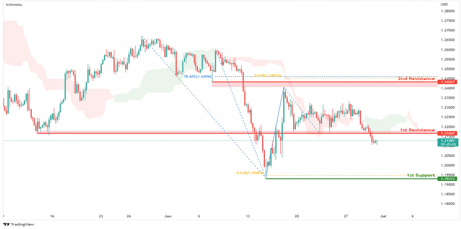 GBP/USD: ожидается продолжение нисходящего движения. Прогноз на 30 июня 2022 г.ИнстаФорекс - Instaforex, 3 года назад На 4-часовом графике пара GBP/USD движется ниже индикатора Облако Ишимоку, что указывает на медвежий импульс. Ожидается, что цена снизится от 1-го уровня сопротивления 1.21657, соответствующего горизонтальному перекрытию, выступающему в роли сопротивления, до 1-го уровня поддержки 1.19313, который соответствует уровню свинг-лоу, выступающему в качестве поддержки, и 61.8% проекции Фибоначчи. В качестве альтернативы цена может пробить 1-й уровень сопротивления и подняться до 2-го сопротивления 1.24327, соответствующего 61.8% проекции Фибоначчи, 78.6% уровню коррекции Фибоначчи и линии сопротивления. Торговая рекомендация Вход: 1.21657 Условия для входа: горизонтальное перекрытие, выступающее в роли сопротивления Тейк-профит: 1.19313 Условия для фиксации прибыли: уровень свинг-лоу, выступающий в качестве поддержки, и 61.8% проекция Фибоначчи Стоп-лосс: 1.24327 Условия для активации ордера стоп-лосс: 61.8% проекция Фибоначчи, 78.6% уровень коррекции Фибоначчи и линия сопротивления Материал предоставлен компанией InstaForex - www.instaforex.com |