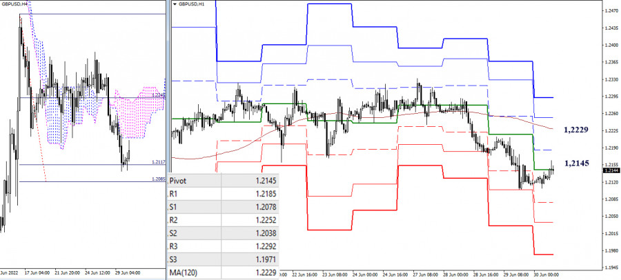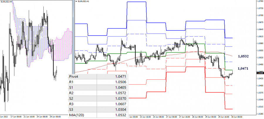 EUR/USD и GBP/USD 30 июня – рекомендации технического анализаИнстаФорекс - Instaforex, 3 года назад EUR/USD Старшие таймфреймы Зона сопротивлений, во главе с важными для данного участка уровнями 1,0539-68, осталась непокорённой и сохранила своё значение. Игроки на понижение вчера продолжили снижение. Их ориентирами в сложившейся ситуации являются минимальные экстремумы 1,0349 и 1,0339. Надёжное закрепление ниже позволит восстановить нисходящий тренд старших таймов. Н4 – Н1 Игроки на понижение на младших таймах развивают нисходящее движение, но в настоящий момент они находятся в зоне коррекции, тестируя сопротивление центрального Пивот-уровня дня (1,0471). Следующий важный уровень коррекции младших таймов сегодня находится на 1,0532 (недельная долгосрочная тенденция). В случае выхода из зоны коррекции, продолжение развития нисходящего тренда внутри дня будет пролегать через преодоление поддержек классических Пивот-уровней 1,0405 – 1,0370 – 1,0304. *** GBP/USD Старшие таймфреймы Недельный краткосрочный тренд (1,2300) сохраняет роль ограничителя текущей восходящей коррекции. Вчера игроки на понижение вновь продолжали развивать снижение, предпринимая попытку завершить коррекционный подъём. Если попытка окажется удачной, то нисходящий тренд старших таймфреймов будет восстановлен, для этого паре нужно преодолеть психологическую поддержку 1,2000 и надёжно закрепиться под минимальным экстремумом (1,1933). Н4 – Н1 На младших таймах преимущество находится на стороне игроков на понижение, но нисходящее движение на данном этапе себя исчерпало. Пара исполнила нисходящую цель на пробой облака Н4 по первому целевому ориентиру (1,2117) и обозначила коррекцию. Сейчас тестируется сопротивление центрального Пивот-уровня дня (1,2145). При развитии коррекционного подъёма основное значение будет иметь результат тестирования ключевого сопротивления младших таймов (недельная долгосрочная тенденция 1,2229), отвечающего за баланс сил. Если же медведи сумеют завершить коррекцию и пробить цель Н4 (1,2085), то понижательными ориентирами внутри дня станут поддержки классических Пивот-уровней, сегодня они находятся на 1,2078 – 1,2038 – 1,0971. *** При техническом анализе ситуации используются: старшие таймфреймы – Ichimoku Kinko Hyo (9.26.52) + уровни Фибо Киджун Н1 – Pivot Points (классические) + Moving Avarage 120 (недельная долгосрочная тенденция) Материал предоставлен компанией InstaForex - www.instaforex.com |