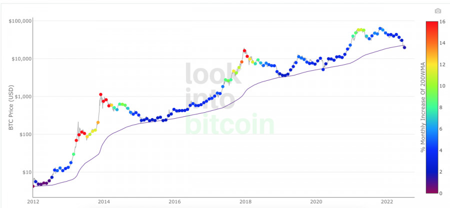 Рынок криптовалют привлек инвестиции в шорт BTC-фонды: что это значит?ИнстаФорекс - Instaforex, 3 года назад Месяц страшных потрясений и рекордных падений постепенно отдаляется от Биткоина. Актив уверенно консолидируется в диапазоне $19k-$20k и даже демонстрирует локальные сигналы к росту. Криптовалюте удалось закрепиться выше $20k после локального периода усиленного давления продавцов. Тем не менее говорить о полноценном восходящем движении не приходится, так как покупательские объемы, а также инвестиционная привлекательность Bitcoin находятся на низком уровне. При этом основные метрики, которые отражали настроения инвесторов и указывали на вероятный разворот, находятся на самых низах. Индекс страха и жадности восстановился до уровня 19 и в скором времени может покинуть диапазон экстремального страха. В текущей ситуации это означает снижение давления негативных фундаментальных факторов, нежели желание инвесторов толкать цену вверх. Однако индекс страха и жадности также показывает, что ситуация на рынке стабилизировалась, негативные макроэкономические факторы сохраняются, но активно на рынок не влияют. Биткоин торговался ниже 200-недельной средней более недели, что является рекордным отрезком, на протяжении которого актив находился ниже данного показателя. Но по состоянию на 5 июля актив совершил локальный восходящий рывок и приблизился к метрике, закрепившись выше $20k. Таким образом, монета вновь приблизилась к уровню 200w MA. Это позитивный сигнал, который указывает на важность данного уровня, а также постепенно растущие покупательские настроения. Большинство ончейн-метрик также указывало на приближение Биткоина к локальному дну, что должно было повлечь за собой постепенное восстановление котировок. Локальный позитив появился в инвестиционном секторе, где после рекордного оттока из BTC $423 миллионов наблюдается прирост капитала. Однако важно понимать, что большая часть вложений пришлась на шортовые продукты на основе Биткоина. Изначально может показаться, что это негативный сигнал, свидетельствующий о наличии медвежьих настроений. Отчасти это действительно так, а потому вполне вероятно ожидать зарождения локального нисходящего тренда. Однако если мы вспомним ноябрь 2021 года, когда SEC одобрили фьючерсный ETF на Биткоин, то поймем, что short-фонд способствует сосредоточению больших объемов коротких позиций за короткий период времени. С учетом усложненного доступа к ликвидности, а также любви маркет-мейкеров к манипуляциям рынком, нас может ожидать перегрев таких инструментов, который впоследствии послужит топливом для восходящего движения криптовалюты. Аналогичная ситуация происходила в ноябре, когда объемы фьючерсной торговли привели к перегреву рынка и зарождению нисходящего движения. Летом 2022 года мы стали свидетелями кризиса ликвидности, а потому нет сомнений в том, что чрезмерная нацеленность на снижение Биткоина приведет к обратному эффекту. Вместе с тем мы видим, что рынок настроен оптимистично, что выражается в росте объемов открытых лонгов. Это говорит о формировании локальной дивергенции. Инвестиционные потоки идут в шортовые продукты, в то время как цена показывает рост, а объемы лонгов растут. Вполне вероятно, что закрепление BTC выше психологического уровня $20k позитивно сказалось на настроениях инвесторов. С у