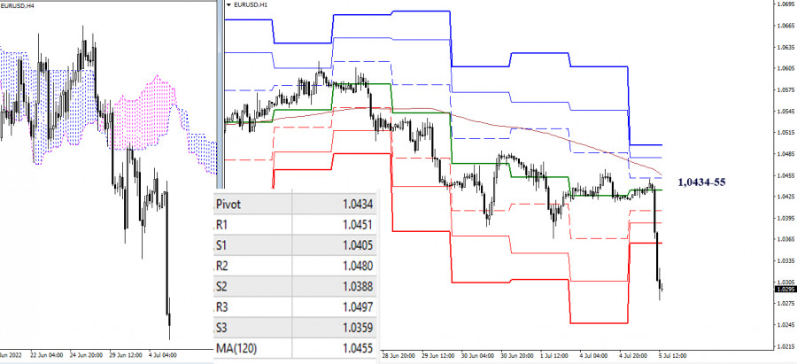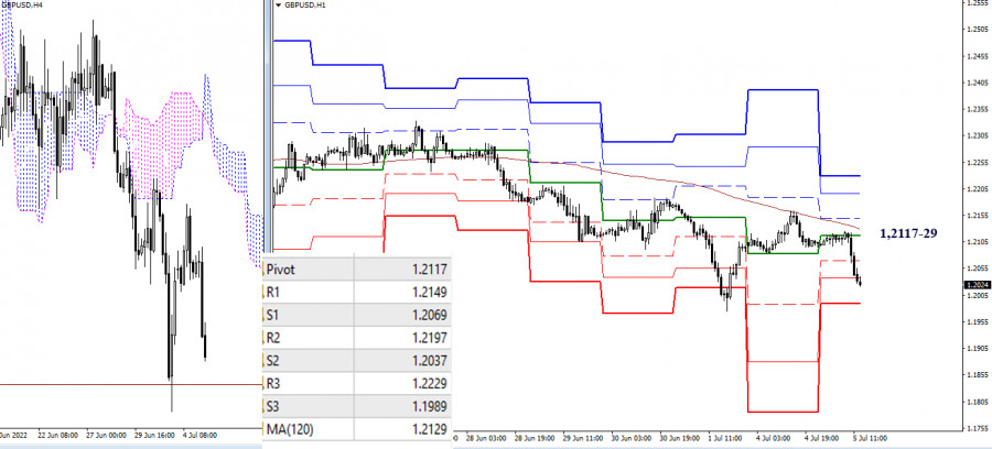 EUR/USD и GBP/USD 5 июля – рекомендации технического анализаИнстаФорекс - Instaforex, 3 года назад EUR/USD Старшие таймфреймы Вчерашний день не принёс изменений в расстановку сил. Сегодня мы наблюдаем достаточно масштабную активность игроков на понижение, они обновили минимальные экстремумы 1,0349-39, которые в течение двух последних месяцев служили понижательными ориентирами. Если медведям удастся сейчас не только обозначить новый минимум, но и удержать позиции, то можно рассматривать новые перспективы. Дальнейшее внимание игроков на понижение, к примеру, может быть направлено на значимый психологический уровень 1,0000. Н4 – Н1 В настоящий момент преимущество в сложившейся ситуации находится на стороне медведей. Игроки на понижение сегодня превзошли ожидания, сформированные на младших таймфреймах в виде ориентиров классических Пивот-уровней. Пройденные уровни теперь, в случае восстановления позиций игроками на повышение, могут послужить сопротивлениями 1,0359 – 1,0388 – 1,0405 – 1,0434-55. *** GBP/USD Старшие таймфреймы Вчера ситуация не претерпела существенных изменений. Роль сопротивления данного участка накануне подтвердил и сохранил дневной краткосрочный тренд (1,2153). Сегодня игроки на понижение пытаются проявить активность и достичь результативности. Их задача сейчас заключается в преодолении ближайших поддержек, которыми являются психологический уровень 1,2000 и минимальный экстремум 1,1933. Надёжное закрепление ниже позволит рассматривать новые перспективы. Н4 – Н1 Ключевой уровень младших таймов (недельная долгосрочная тенденция) не позволил вчера изменить действующий баланс сил. Преимущество осталось на стороне игроков на понижение. Сегодня за сохранение медвежьих преимуществ отвечает район 1,2117-29 (центральный Пивот-уровень Дня + недельная долгосрочная тенденция). Ориентирами для усиления медвежьих настроений внутри дня являются классические Пивот-уровни, к настоящему моменту первые две поддержки медведи уже прошли, впереди S3 (1,1989). Далее внимание будет направлено на поддержку старших таймов 1,1933. *** При техническом анализе ситуации используются: старшие таймфреймы – Ichimoku Kinko Hyo (9.26.52) + уровни Фибо Киджун Н1 – Pivot Points (классические) + Moving Avarage 120 (недельная долгосрочная тенденция) Материал предоставлен компанией InstaForex - www.instaforex.com |