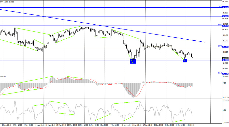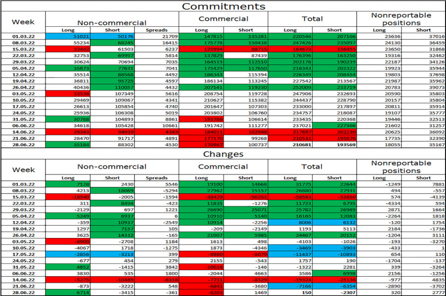 Добрый день, уважаемые трейдеры! На часовом графике пара GBP/USD в понедельник выполнила рост к уровню коррекции 523,6% - 1,2146, отбой от него и разворот в пользу американской валюты. А уже сегодня началось сильное падение в направлении уровня 1,1933. Как я уже говорил в обзоре по евро-доллару, индекс деловой активности не мог повлиять на настроение трейдеров настолько, чтобы пара упала за пару часов на 140 пипсов. То же самое справедливо и для фунт-доллара. В Великобритании сегодня тоже вышло финальное значение индекса деловой активности PMI в сфере услуг за июнь, которое тоже оказалось более высоким в сравнении с предварительным значением. Таким образом, доллар и в этом случае должен был падать, а не расти. После понимания этого момента становится очевидно, что европейская и американская статистика не имеют никакого отношения к утреннему обвалу на валютном рынке. Получается, что доллар США резко начал расти на основании совершенно других причин. Каких же? Да самых простых! Взгляните на 4-часовой или дневной графики, и вам сразу станет все понятно. Нисходящий тренд сохраняется уже очень долгое время, за последние недели британец и европеец предприняли попытку преломить этот тренд, но у них опять ничего не вышло. Таким образом, после определенной паузы трейдеры просто возобновили те действия, которые приносили им прибыль в последние месяцы – продажи евро и фунта. Вот и все объяснение. Это получилось довольно неожиданно, я думал, что сильное движение возобновится ближе к концу недели, когда в США выйдут важные отчеты Nonfarm Payrolls и уровень безработицы, но большинство трейдеров решило по-своему. Кстати, вполне возможно, что сейчас мы видим реакцию на будущий отчет по пэйроллам. Не исключено, что этот отчет будет сильным, поэтому покупки доллара довольно логичны в данное время. Но такие действия спекулянтов вряд ли можно было угадать заранее. На 4-часовом графике пара выполнила новый разворот в пользу валюты США и процесс возврата к уровню 1,1980. Отбой котировок от уровня 1,1980 сработает в пользу британской валюты и начала нового роста в направлении уровня коррекции 127,2% - 1,2250. Закрепление курса пары под уровнем 1,1980 повысит вероятность дальнейшего падения в направлении следующего уровня Фибо 161,8% - 1,1709. Назревающих дивергенций сегодня нет ни у одного индикатора. Отчет Commitments of Traders (COT):