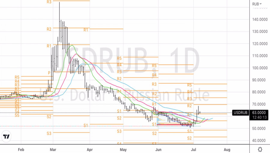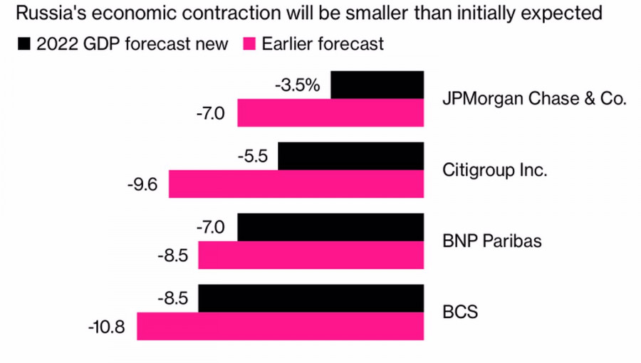 Рублю чихать на внешний фонИнстаФорекс - Instaforex, 3 года назад Даже в открытой рыночной экономике недовольство властей по поводу резких колебаний национальной валюты нередко приводит к откату. Что же говорить о такой закрытой, отдаленно напоминающей рыночную экономику, как российская? Заявление членов правительства, что оптимальным для РФ был бы курс в 70-80 рублей за доллар, с последующим ослаблением ранее введенных ограничений по движению капитала спровоцировали ралли USDRUB на 11% за день. То ли еще будет... Динамика российского рубля После того как у нерезидентов появилась лазейка по получению дивидендов от российских АО, а у резидентов – по зачислению средств на счета, открытые за пределами страны, рубль ослаб по отношению к доллару США до двухмесячного минимума. Понимая, что в условиях командно-административной экономики рыночным снижением ключевой ставки ЦБ РФ на колоссальные 1050 б.п. проблему сильной национальной валюты не решить, власти взялись за ослабление ограничений, связанных с движением капитала. Чем ближе к рынку, чем больше рубль реагирует на общемировые тенденции. И западным экспертам показалось, что обвал – результат стремительного укрепления доллара США из-за опасений по поводу приближающейся рецессии. На самом деле судьба USDRUB в настоящее время решается именно в России, а не за ее пределами. В этом отношении пауза в деле снятия ограничений позволит котировкам анализируемой пары стабилизироваться, в то время как у каждого из противников появляются новые козыри. Тот факт, что спад в экономике РФ, вероятнее всего, окажется менее глубоким, чем ожидалось, оказывает рублю поддержку. Напротив, постепенное восстановление импорта – плохая для него новость. Банки улучшают свои оценки российского ВВП, ссылаясь по постепенную адаптацию экономики к санкциям. Об этом же свидетельствуют как рост промышленного производства на 1,7% м/м в мае, так и увеличение добычи нефти на 7% в июне от уровня локальных минимумов, зафиксированных после начала вооруженного конфликта на Украине. В качестве основных причин роста последнего показателя называются сильный внутренний спрос и переориентация потоков поставок черного золото в Азию. JP Morgan отмечает, что в России отмечается более мягкая рецессия, чем прогнозировалось, и изменяет свой прогноз по ВВП на 2022 с -7% до -3,5%. То же самое делают другие банки. Прогнозы по российскому ВВП на 2022 Судя по анализу торговли пяти основных торговых партнеров с Россией, импорт последней в конце весны увеличился по сравнению с ее началом. В годовом исчислении отмечается сокращение темпов его снижения с -43% в апреле до -29% в мае. Теоретически это может привести к сужению профицита внешней торговли и ослабить рубль. Технически формирование пин-бара на дневном графике USDRUB говорит о том, что «медведи» еще не выбросили белый флаг. Фиксируем прибыль по сформированным от уровня 54,35 лонгам в случае падения пары ниже 61,75 и открываем краткосрочные шорты. Если этого не произошло, продолжаем удерживать длинные позиции. Материал предоставлен компанией InstaForex - www.instaforex.com |