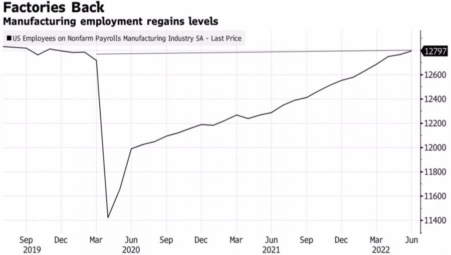 Доллар все всем доказалИнстаФорекс - Instaforex, 3 года назад Рынок труда США оказался слишком горячим, чтобы ФРС чувствовала себя комфортно. Занятость вне сельскохозяйственного сектора выросла на впечатляющие 372 тыс., и с учетом того, что два предыдущих отчета были пересмотрены в сторону понижения на 74 тыс., похоже, не собирается сбавлять обороты. Сохранение безработицы на отметке 3,6% и снижения доли участия в рабочей силе говорят о том, что Центробанк в ближайшее время останется очень агрессивным «ястребом», что по сути не оставляет никаких шансов «быкам» по EURUSD. Реакция финансовых рынков на отчет по американской занятости оказалась показательной. Фьючерсы на акции рухнули, доходность казначейских облигаций подросла, а деривативы CME повысили ожидания роста ставки по федеральным фондам в 2022 до 180 б.п. Похоже, вопрос с ее увеличением на 75 б.п. в июле решен, так что поклонники доллара США могут спать спокойно. Рынок труда действительно очень горяч: занятость в обрабатывающей промышленности вернулась к допандемическому уровню, число вакансий составляет 11,2 млн при количестве ищущих работу в 5,9 млн Динамика занятости в обрабатывающей промышленности Любопытно, что локальное дно по EURUSD было сформировано в начале европейской сессии Forex, после того как Goldman Sachs присоединился к мнению ING о близости рецессии в валютном блоке. Голландский банк заявил, что спад произойдет независимо от того, отключит ли Россия газ или нет. Вполне возможно, сильный рынок труда поможет Джерому Пауэллу с мягкой посадкой. При этом рецессия в Европе и других уголках планеты вернет в фокус внимания инвесторов фактор американской исключительности. Действительно, по данным Wood Mackenzie, Старый Свет увеличил импорт сжиженного природного газа на 49% с начала года по 19 июня. Напротив, показатели по Индии, Китаю и Пакистану снизились на 16%, 21% и 15% соответственно. Европа, сокращая свою зависимость от российского голубого топлива, забирает его у остальных стран. И это обстоятельство подталкивает мировую экономику к спаду. Таким образом, все самые сильные козыри доллара США остаются в игре. Американская экономика выглядит лучше своих основных конкурентов. Ожидания глобальной рецессии усиливают спрос на валюты-убежища. Наконец, ФРС ужесточает денежно-кредитную политику быстрее конкурентов, чему способствуют благоприятные условия, включая сильный рынок труда. На мой взгляд, устойчивость EURUSD на фоне сильной статистики по американской занятости связана с желанием хедж-фондов зафиксировать прибыль по шортам. Они рассчитывали на реализацию принципа «покупай доллар на слухах, продавай на фактах». Тем не менее сильные данные позволяют говорить о скором восстановлении нисходящего тренда. Технически на недельном графике EURUSD продолжает формироваться паттерн Волны Вульфа. Его точка 5, вероятнее всего, возникнет на одном из пивот-уровней 1,005 или 0,985. Потенциал «медвежьего» тренда не раскрыт, продолжаем продавать евро на откатах. Материал предоставлен компанией InstaForex - www.instaforex.com |