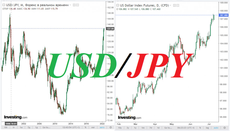 USD/JPY: уровень 137.00 взят. Что дальше?ИнстаФорекс - Instaforex, 3 года назад В ходе сегодняшней азиатской торговой сессии пара USD/JPY пробила очередной психологически значимый уровень 137.00, достигнув внутридневного локального максимума на отметке 137.27. В последний раз вблизи текущих отметок USD/JPY находилась в октябре 1998 года. Котировки пары растут как на фоне тотально укрепляющегося доллара, так и на фоне остающейся слабой иены. Экономисты также считают, что расширяющийся спред доходности американских и японских гособлигаций способствует дальнейшему росту USD/JPY. Стратегические японские инвесторы более охотно покупают американские гособлигации, приносящие больший доход в сравнении с японскими гособлигациями. Ну а поскольку покупка американских активов производится в долларах, то покупка доллара за иену способствует естественному укреплению доллара против иены. Рынки внимательно следят за динамикой доходности казначейских облигаций США, и, если политика Банка Японии в сфере контроля за кривой доходности (YCC) не будет изменена в ближайшем будущем, перспективы USD/JPY, вероятно, будут зависеть от перспектив доходности в США. Если она (доходность) будет расти, то и USD/JPY продолжит рост. А росту доходности американских бондов способствует, в свою очередь, кредитно-денежная политика ФРС, имеющая тенденцию к дальнейшему ужесточению. Так, на прошлой неделе член Совета управляющих ФРС Кристофер Уоллер заявил о необходимости ещё одного повышения процентной ставки на 75 процентных пунктов в текущем месяце и на 50 процентных пунктов в сентябре, после чего темпы повышения процентных ставок можно будет снизить до 25 процентных пунктов. По его мнению, инфляция - это налог на экономическую активность, и чем он выше, тем больше он её подавляет. Ранее о нежелательности высокой инфляции в США говорил и глава ФРС Джером Пауэлл. По его мнению, борьба с высокой инфляцией является главной целью ФРС, а риски рецессии в национальной экономике, по его мнению, остаются невысокими. Как следует из опубликованных в минувшую среду протоколов июньского заседания Комитета по операциям на открытом рынке (FOMC), в июле ФРС повысит ставку на 50 или 75 базисных пунктов. В них также говорится, что высокая инфляция оправдывает "ограничительные" процентные ставки, с возможностью "более ограничительной позиции", если инфляция сохранится на высоких уровнях. Глава Федерального резервного банка Сент-Луиса Джеймс Буллард также на прошлой неделе поддержал более агрессивное ужесточение монетарной политики ФРС, отметив желательность уровня ключевой процентной ставки в текущем году в 3,5%. В то же время иена остается крайне уязвимой, пока Банк Японии продолжает занимать выжидательную позицию. Как заявил в конце прошлого месяца заместитель управляющего центрального банка Масаёси Амамия, Банк Японии будет придерживаться смягченной денежно-кредитной политики для поддержки экономики. Глава Банка Японии Харухико Курода в рамках дискуссии, состоявшейся в Базеле 26 июня, также отметил, что "в отличие от других экономик, японская экономика не сильно пострадала от глобального инфляционного тренда, поэтому денежно-кредитная политика продолжит оставаться стимулирующей". Что же касается доллара, то он получил в минувшую пятницу дополнительную поддержку от публикации весьма позитивных данных с 