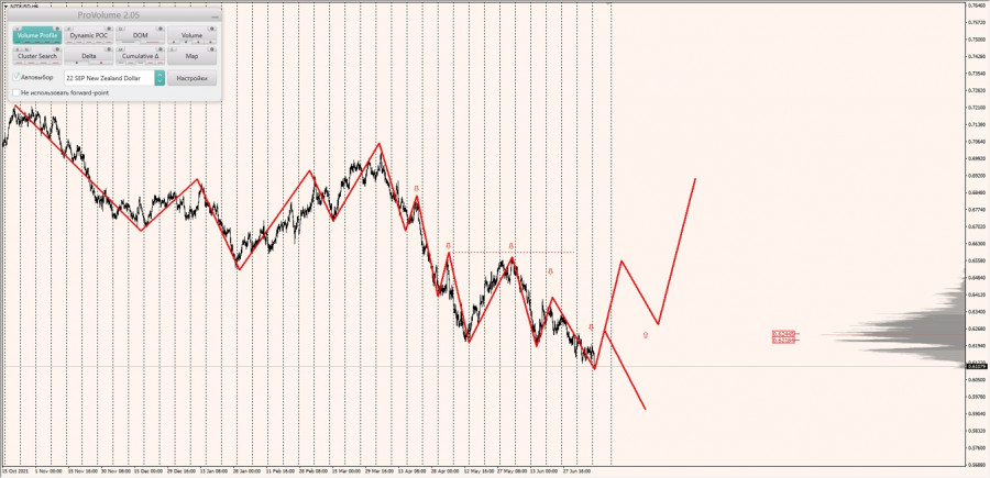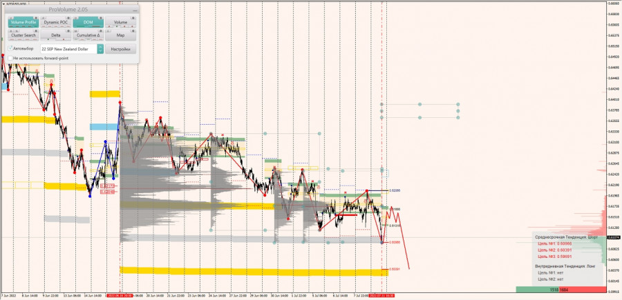 Долгосрочная тенденция: в шорт. Максимальное скопление объемов текущего контракта расположено в диапазоне, по котировкам 0.62184-0.62445. В настоящий момент по паре совершаются инвестиционные операции ниже, указывая на силу продавцов.