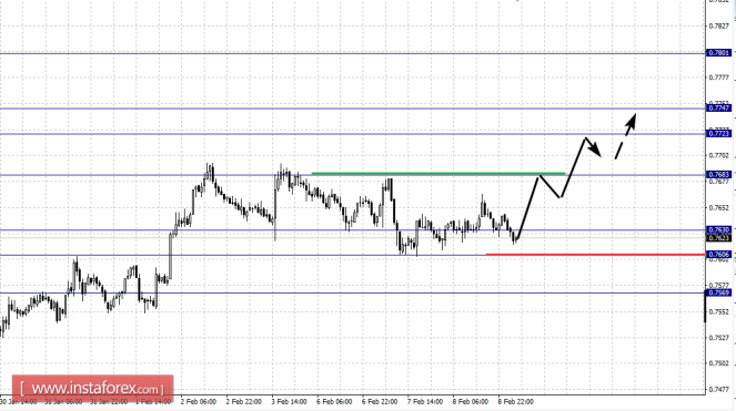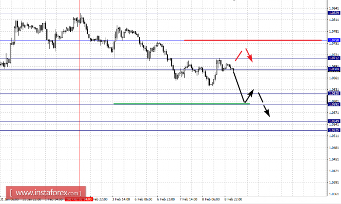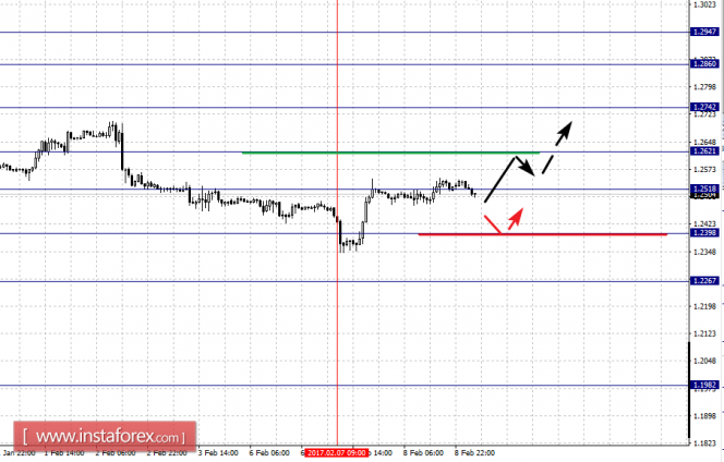 По паре Евро/Доллар ключевыми уровнями в масштабе Н1 являются: 1.0758, 1.0712, 1.0684. 1.0620, 1.0592, 1.0549 и 1.0525. Здесь мы следим за нисходящей структурой от 2 февраля. Краткосрочное движение книзу ожидаем в коридоре 1.0620 – 1.0592, пробой последнего значения приведет к развитию выраженного движения, в данном случае цель – 1.0525, в коридоре 1.0525 – 1.0549 консолидация. Краткосрочное нисходящее движение возможно в коридоре 1.0684 – 1.0710, пробой последнего значения приведет к развитию углубленной коррекции, здесь цель – 1.0755, этот уровень является ключевой поддержкой для низа, его пробой будет располагать к развитию восходящей структуры, в данном случае потенциальная цель – 1.0829. Основная тенденция – нисходящая структура от 2 февраля. Торговые рекомендации: Buy: 1.0684 Take profit: 1.0710 Buy: 1.0714 Take profit: 1.0755 Sell: 1.0620 Take profit: 1.0595 Sell: 1.0589 Take profit: 1.0550 По паре Фунт/Доллар ключевыми уровнями в масштабе Н1 являются: 1.3093, 1.2947, 1.2860, 1.2742, 1.2621, 1.2518, 1.2398 и 1.2267. Здесь от 7 февраля наблюдаем формирование локальной структуры для последующего развития восходящего движения. Продолжения движения кверху ожидаем после пробоя 1.2621, в данном случае первая цель - 1.2742, пробой которой приведет к движению до 1.2860, в коридоре 1.2860 – 1.2947 краткосрочное восходящее движение и отсюда ожидаем разворот в коррекцию. Потенциальным значением для верха в масштабе Н1, рассматриваем уровень 1.3093. Краткосрочное нисходящее движение, а также консолидация, возможны в коридоре 1.2518 – 1.2398, пробой последнего значения приведет к развитию нисходящей структуры, в данном случае цель – 1.2267. Основная тенденция – локальная структура для верха от 7 февраля. Торговые рекомендации: Buy: 1.2520 Take profit: 1.2620 Buy: 1.2625 Take profit: 1.2740 Sell: 1.2395 Take profit: 1.2270 Sell: Take profit:
