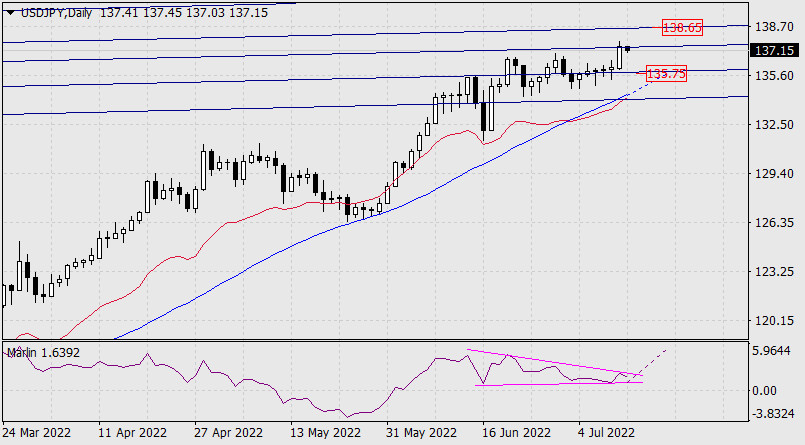 Прогноз по USD/JPY на 12 июля 2022 годаИнстаФорекс - Instaforex, 3 года назад Валютная пара USD/JPY создаёт внутреннюю техническую структуру для очередного броска вверх. Вчера был отработан целевой уровень по вложенной линии ценового канала, сегодня утром от сопротивления намечается небольшой откат. Минимум отката – это полное перекрытие вчерашнего роста, ретест поддержки 135.75. Далее вероятен рост к цели 138.65 по верхней линии канала. Если такого глубокого отката не произойдёт, то целевой уровень 138.65 будет достигнут в ближайшее время.