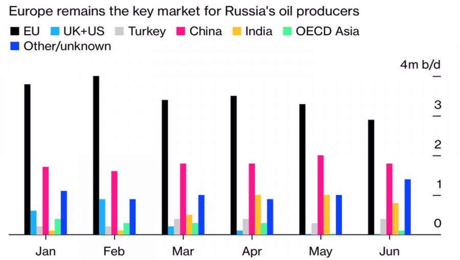 Покорит ли рубль новую вершину?ИнстаФорекс - Instaforex, 3 года назад Не всегда все происходит так, как тебе хочется. Даже если в руках находится власть. Разговоры правительственных чиновников, что для российской экономики курс доллара в 70-80 рублей был бы оптимальным, так и остались разговорами. После незначительного роста, связанного с ослаблением валютных ограничений, пара USDRUB вновь вернулась ниже отметки 60. Фундаментальные факторы продолжают играть на стороне «россиянина», что отмечают даже зарубежные банки и инвестиционные компании. По мнению Raiffeisen Bank, счет текущих операций РФ вряд ли вернется к уровням, имевшим место до вооруженного конфликта на Украине, ранее конца 2022. Западные санкции больно ударили по импорту, в то время как экспорт существенного сокращения не претерпел. По данным МЭА, объем валютной выручки России от поставок черного золота в июне вновь превысил $20 млрд, увеличившись на $700 млн по сравнению с маем. Несмотря на то что экспорт нефти и нефтепродуктов сократился до 7,4 млн б/с, самого низкого уровня с августа, увеличению доходов способствовали более высокие цены. При этом даже с учетом эмбарго Европа продолжает оставаться основным покупателем. Динамика поставок российских нефти и нефтепродуктов по регионам В июне Brent стоила в среднем $117 за баррель. В июле котировки североморского сорта частенько опускаются ниже $100 за баррель, что на фоне запретов на использование российской нефти должно сократить выручку Москвы. На бумаге это сузит профицит торгового баланса и ослабит рубль. На мой взгляд, процесс идет не так быстро, как хотелось бы Западу, поэтому можно говорить лишь о формировании локального дна парой USDRUB, а не о сломе нисходящего тренда. Тем более что другие фундаментальные факторы для российской валюты улучшаются. В частности, Сбербанк прогнозирует, что рецессия в стране по факту окажется не такой глубокой, как ранее предполагалось. Темпы сокращения ВВП падают: с 1,9% в апреле до 0,5% в мае. За второй квартал валовый внутренний продукт уменьшился на 4-4,5%, а по итогам года, по мнению компании, может сократиться лишь на 3,5%. Raiffeisen Bank отмечает, что механизм изъятия валютной выручки для стабилизации курса рубля вряд ли будет разработан Минфином и запущен до конца 2022, что на фоне сильного счета текущих операций и адаптации экономики РФ к западным санкциям позволяет рублю сохранять свою силу. На мой взгляд, в среднесрочной перспективе пару USDRUB ожидает консолидация в диапазоне 54-70, что дает возможность продавать ее на росте или покупать на снижении котировок к нижней границе торгового канала. Технически на дневном графике USDRUB столкнулась с динамической поддержкой в виде скользящих средних. Лишь ее преодоление позволит говорить о восстановлении нисходящего тренда. Держим сформированные от 61,75 шорты. Напротив, отбой от EMA с последующими успешными штурмами сопротивлений на 62 и 65,1 создадут предпосылки для развития коррекционного движения и станут основанием для покупок. Материал предоставлен компанией InstaForex - www.instaforex.com |
