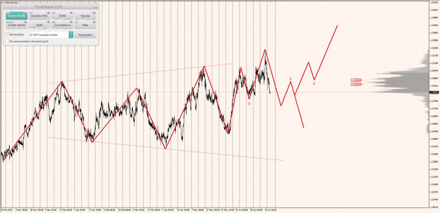 Долгосрочная тенденция: в лонг. Максимальное скопление объемов текущего контракта расположено в диапазоне по котировкам 1.29354-1.29699. В настоящий момент по паре совершаются инвестиционные операции ниже, указывая на слабость покупателей.