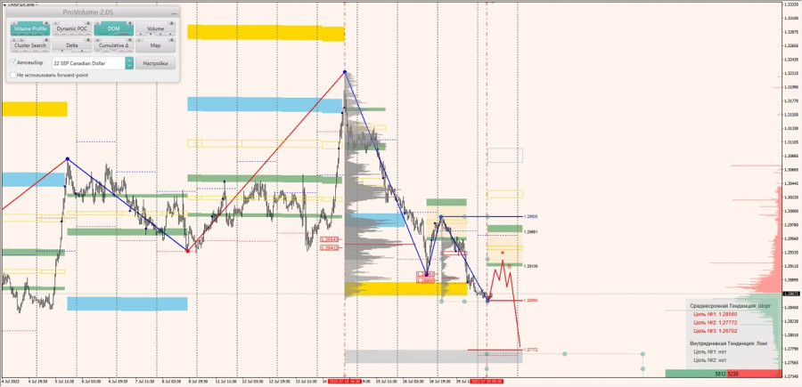 Среднесрочная тенденция: в шорт. Максимальное скопление объемов среднесрочной тенденции расположено в диапазоне по котировкам 1.29412-1.29543. В настоящий момент по паре совершаются инвестиционные операции ниже, указывая на силу продавцов.