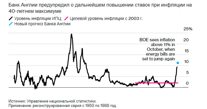 Инфляция в Великобритании достигла нового 40-летнего максимумаИнстаФорекс - Instaforex, 3 года назад Британский фунт так и не сумел зацепиться за уровень 1.2030 после вчерашнего отчета по рыку труда, что указывает на явно отсутствие желания покупать даже по текущей цене несмотря на невыразительную восходящую коррекцию, по сравнению с той же европейской валютой. Очередной инфляционный скачек также навредил сегодня планам покупателей фунта. Совсем недавно управляющий Банка Англии Эндрю Бейли заявил, что политики готовы продолжить повышать стоимость заимствований более крупными шагами, чтобы контролировать инфляцию, что стало самым откровенным комментарием за последнее время. А учитывая, каким оказался сегодняшний отчет по инфляции в Великобритании, сомневаться в дальнейшей агрессивной денежно-кредитной политики со стороны Банка Англии никто уже не будет. Бэйли сказал, что цель Банка Англии - вернуть инфляцию к уровню в 2%, и больше нет никаких «если или но». «Мы хотим, чтобы люди видели - мы настроены серьезно, и одного повышения только на 25 базисных пунктов явно будет недостаточно в ближайшее время». Как показали сегодняшние данные, в июне инфляция в Великобритании достигла нового 40-летнего максимума, усилив кризис стоимости жизни, вынудив Банк Англии дальше более резко повышать процентную ставку. Потребительские цены выросли на 9,4% по сравнению с прошлым годом, что стало самым большим ростом с февраля 1982 года. В управление национальной статистики отметили, что ускорение с 9,1% в мае было обусловлено ростом цен на топливо на 9,3% за месяц. Очевидно, что сейчас цены растут гораздо быстрее, чем заработная плата. Боль для домохозяйств будет усиливаться: прогнозируется, что инфляция превысит уровень в 11% в октябре этого года, когда начнется очередное повышение цен на энергоносители. С поправкой на цены реальная заработная плата упала на 2,8%. Недавние забастовки в Великобритании показывают, насколько тяжелой становится ситуации, когда инфляция приближается к двузначным цифрам. Рабочие начинают давить на профсоюзы с тем, чтобы работодатели активней повышали заработную плату, что еще больше разгоняет инфляцию. Банк Англии обеспокоен тем, что может возникнуть спираль, когда цены и заработная плата растут друг за другом. Принимая во внимание повышенные инфляционные ожидания и перегретый рынок труда, скорей всего регулятор пойдет на более агрессивное повышение ставки сразу на 50 базисных пунктов в августе. Снижение покупательной способности потребителей начинает подрывать рост экономики, замедляя ее восстановление после пандемии. На рынке поползли слухи о том, что в ближайшее время Казначейство примет решение повысить заработную плату в госсекторе сразу на 5% — это больше, чем 3%, которые были предложены в качестве ориентира. Рост заработной платы в частном секторе за последние три месяца составил в среднем 7,2%. Стоит сказать, что рост цен распространился не только на топливо, но и на многие другие сегменты экономики. Очевидный скачек отмечен в туристической сфере и гостиничном бизнесе. Рестораны и жилье выросли на 8,6% в годовом исчислении по сравнению с 7,6% в мае. Цены на продукты питания и безалкогольные напитки выросли на 9,8% по сравнению с прошлым годом. Что касается базового индекса потребительских цен, где исключены продукты питания, 