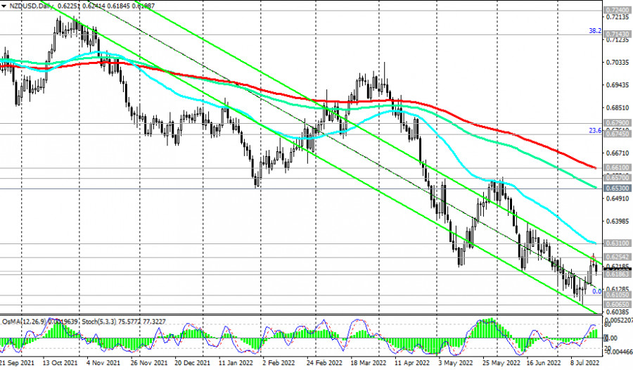 NZD/USD: технический анализ и торговые рекомендации на 21.07.2022ИнстаФорекс - Instaforex, 3 года назад Как мы отметили в нашем сегодняшнем «Фундаментальном анализе», американский доллар сегодня «заметно укрепляется против основных сырьевых валют: канадского, австралийского, новозеландского долларов». На момент публикации пара NZD/USD торгуется «в зоне важного краткосрочного уровня поддержки 0.6186 (ЕМА200 на 1-часовом графике). Несмотря на текущий рост, NZD/USD торгуется в зоне медвежьего рынка, оставаясь ниже ключевых уровней сопротивления 0.6790 (ЕМА200 на недельном графике), 0.6745 (ЕМА200 на месячном графике и уровень Фибоначчи 23,6% коррекции в глобальной волне снижения пары с уровня 0.8820 в 2014-2015 годах), 0.6610 (ЕМА200 на дневном графике), а на прошлой неделе пара достигла «нового 26-месячного минимума на отметке 0.6060». Вчера NZD/USD предприняла попытку прорыва важных уровней сопротивления 0.6250 (верхняя граница нисходящего канала на дневном графике), 0.6254 (ЕМА200 на 4-часовом графике). Однако попытка оказалась неудачной, и сегодня NZD/USD вновь снижается. Пробой уровня поддержки 0.6186 станет сигналом для наращивания/возобновления коротких позиций. Одним из определяющих факторов в динамике NZD/USD остается жесткий курс кредитно-денежной политики ФРС (см. также наш обзор за 08.07.2022 «Индекс доллара DXY: немного истории, текущая ситуация, перспективы» ). В альтернативном сценарии и после повторной, более удачной, попытки прорыва уровня сопротивления 0.6254 NZD/USD направится в сторону отметки 0.6310, через которую проходит уровень сопротивления в виде ЕМА50 на дневном графике. Дальнейший рост маловероятен. В целом преобладает нисходящая динамика NZD/USD, что делает предпочтительными короткие позиции. *) об особенностях торговли NZD/USD также см. в статье NZD/USD: валютная пара (характеристики, рекомендации). Уровни поддержки: 0.6186, 0.6105, 0.6100, 0.6065, 0.6000, 0.5910, 0.5850, 0.5800, 0.5700, 0.5670 Уровни сопротивления: 0.6250, 0.6254, 0.6310, 0.6500, 0.6530, 0.6570, 0.6610, 0.6745, 0.6790
