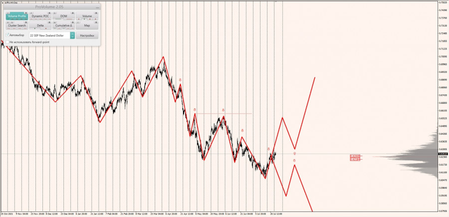 Долгосрочная тенденция: в шорт. Максимальное скопление объемов текущего контракта расположено в диапазоне по котировкам 0.62184-0.62445. В настоящий момент по паре совершаются инвестиционные операции выше, указывая на слабость продавцов.