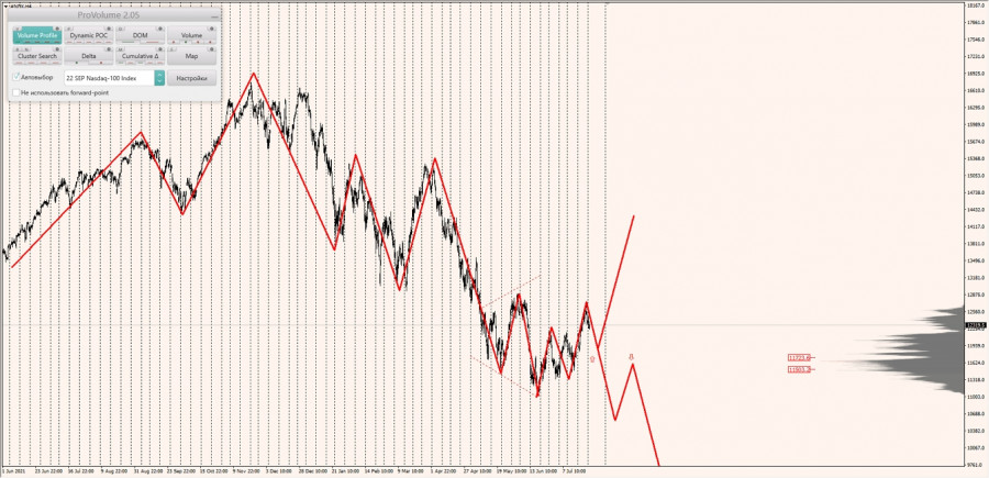 Долгосрочная тенденция: в лонг. Максимальное скопление объемов текущего контракта расположено в диапазоне по котировкам 11503.2-11723.6. В настоящий момент по Nasdaq совершаются инвестиционные операции выше, указывая на силу покупателей.