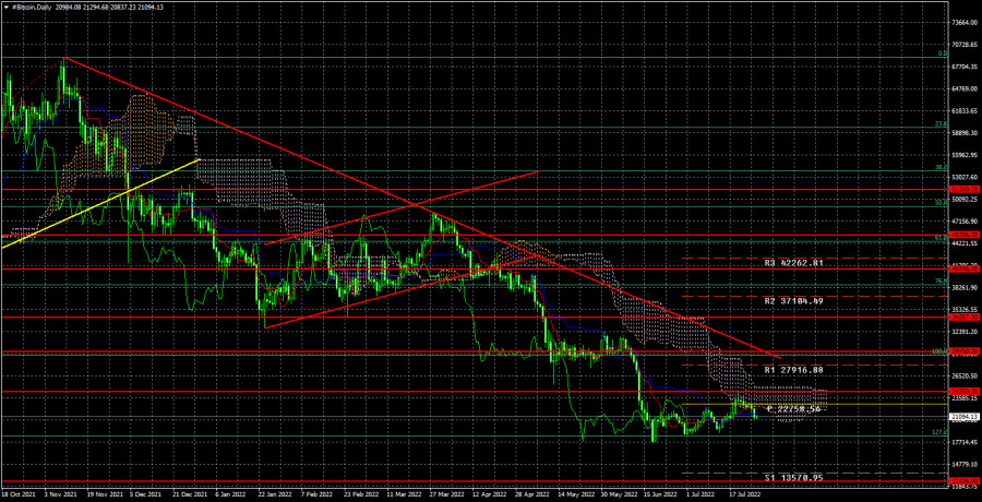 Биткоин корректируется уже полтора месяца, пора опять вниз!ИнстаФорекс - Instaforex, 3 года назад На этой неделе первая криптовалюта в мире сумела вырасти до 24 350$. Этот уровень является важным, и по закреплению ниже него мы определяли дальнейшую тенденцию биткоина. Уровень этот был преодолен с первого раза, а теперь вот цена не смогла закрепиться выше него и отскочила. Таким образом, мы уже имеем сигналы к новым продажам «битка». Далее. Нисходящая линия тренда сохраняет свою актуальность, а криптовалюта даже не пыталась к ней приблизиться. Это говорит также о сохранении сильного «медвежьего» настроения у участников рынка. Получается, что полуторамесячная передышка, за время которой биткоин с горем пополам скорректировался на 6,5 тысяч $, является именно передышкой, паузой, но никак не завершением нисходящего тренда. Следовательно, даже технический анализ продолжает сигнализировать о весьма вероятном новом падении. В принципе, это падение уже началось. В ближайшее время биткоин может вернуться к своим годовым минимумам, а так как он не сумел отойти на достаточное расстояние от них, есть все основания предполагать, что они будут преодолены. После этого начнется падение с целью 12 426$. Фундаментальный фон для «битка» остается очень сложным. Что-то не слышно всех тех экспертов, которые пророчили биткоину 100 000$ в 2021 году, потом в 2022 году. Естественно, сейчас все винят в происходящем ФРС, как будто задачей ФРС является максимальная стоимость биткоина! Поэтому, в принципе, прогноз по биткоину может быть таким же, как по фондовым индексам США – он должен вернуться на допандемические уровни. А уровни эти, напомним, расположены около уровня 6 000$. С нашей точки зрения, потенциал для падения у «битка» еще огромный. Сегодня ФРС повысит ключевую ставку на 0,75%, как минимум, и этот фактор может спровоцировать новый обвал. Естественно, обвал этот может начаться на прямо сегодня вечером. Дело в том, что рынки уже давно ознакомлены с намерениями ФРС, поэтому любое решение сегодня вечером не станет для них шоком. Однако при условии постоянного и непрерывного ужесточения монетарной политики других вариантов у первой криптовалюты, кроме падения, попросту нет. На 24-часовом таймфрейме котировки «битка» закрепились ниже уровня 24 350$. Таким образом, целью является сейчас уровень 12 426$. Трижды «биток» пытался преодолеть уровень 18 500$(127,2% по Фибоначчи), но пока не сумел этого сделать. В принципе, биткоин может упасть теперь до любого значения, хоть до нуля. Вряд ли это, конечно, произойдет, но мы считаем, что курс 5-10 тысяч $ долларов за монету станет реальностью в 2022 году. Отскок от 24 350$ является новым сигналом для продаж. Закрепление ниже 18 500$ станет подтверждением этому сигналу. Материал предоставлен компанией InstaForex - www.instaforex.com |